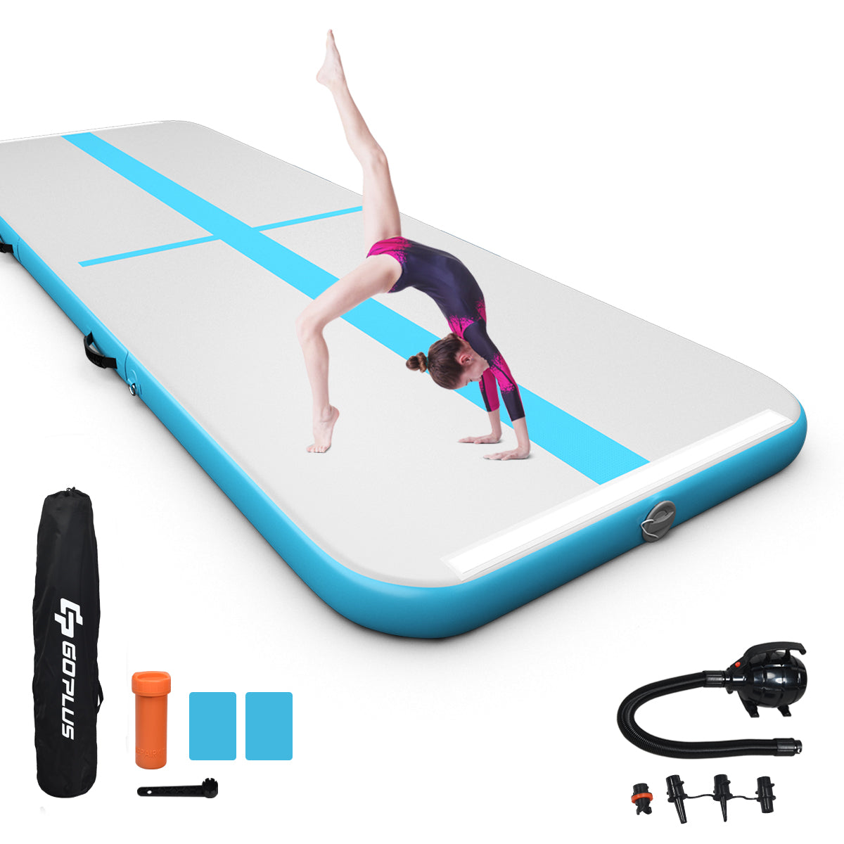 Are you looking for an inflatable gymnastic mat for your daily fitness? Our Air Track gymnastic mat is a good choice for home use and gym use. Made of premium PVC material, this yoga mat is durable and waterproof. Meanwhile, the smooth and soft mat can provide you with comfortable fitness experiences. Equipped with hook and loop fasteners and D-rings, the gymnastic mat can be connected with other mats to get a larger activity space according to your needs. The included carrying bag and repair kit make it convenient to carry out and repair. Besides, with the electric pump, you can easily pump the mat in a short time. This inflatable gymnastic mat is great for gymnastics, tumbling, cheerleading, free running, stunting, martial arts, and water yoga!