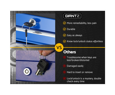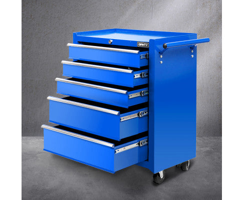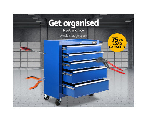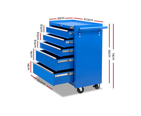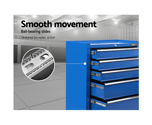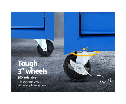 This robust, multi-drawer Giantz Tool Trolley is an essential for any workshop. Crafted from durable steel, it features smooth ball-bearing slides for easy access and a secure lock system for safety. Its spacious design includes varying drawer sizes to accommodate tools of all shapes, complete with non-slip liners. The chest is also mounted on omni-directional castors with locakble front wheels, ensuring a smooth maneuverability and stable positioning. Sleek and functional, it's perfect for organizing and protecting your valuable tools.