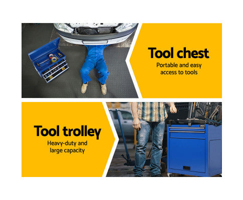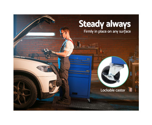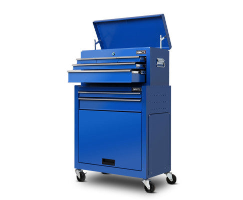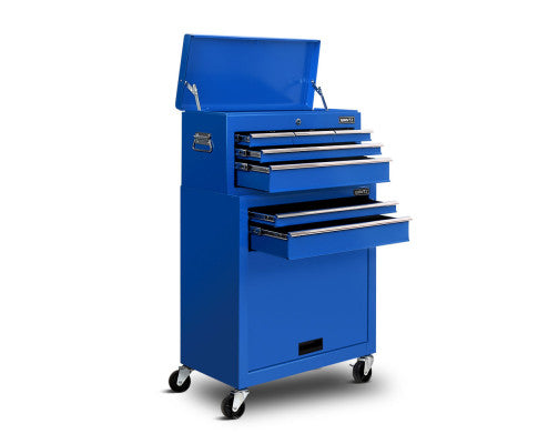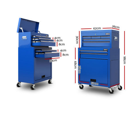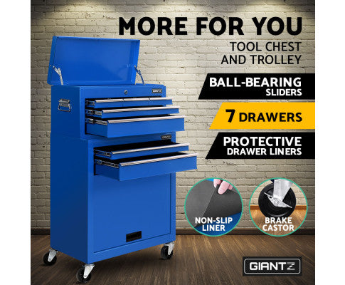 This robust, multi-drawer Giantz Tool Trolley is an essential for any workshop. Crafted from durable steel, it features smooth ball-bearing slides for easy access and a secure lock system for safety. Its spacious design includes varying drawer sizes to accommodate tools of all shapes, complete with non-slip liners. The chest is also mounted on omni-directional castors with locakble front wheels, ensuring a smooth maneuverability and stable positioning. Sleek and functional, it's perfect for organizing and protecting your valuable tools.