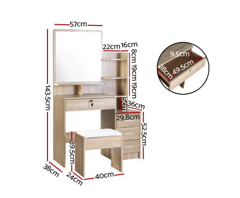 Dressing table overall dimensions: 87cm x 38cm x 143.5cm