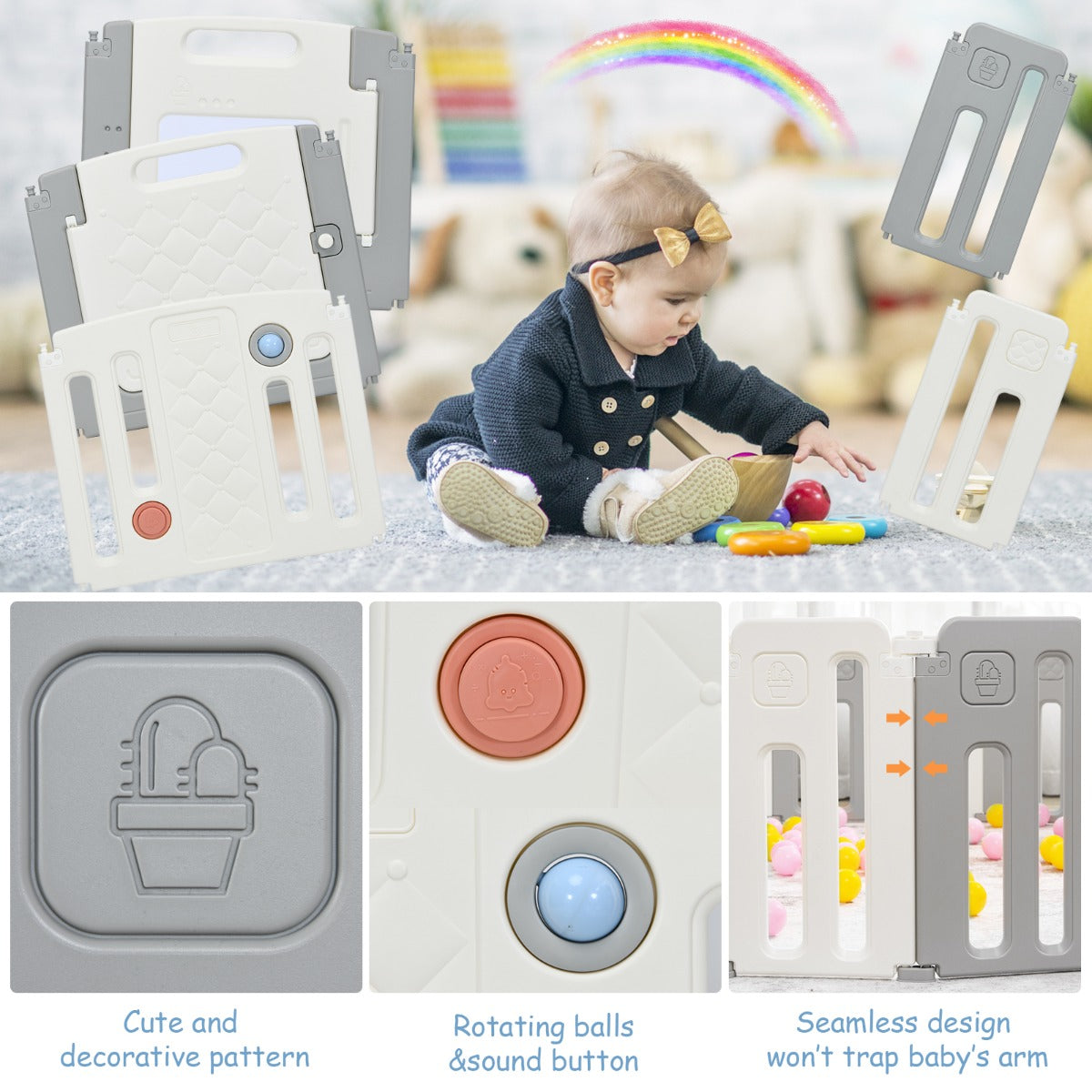 Extra Fun from Joyful Game Board: The interesting toy panel features a rotating ball, sound button and cute pattern, which can inspire your baby's curiosity and bring endless fun. Moreover, the 64cm height of the panel is perfect for babies from 3 months to 6 years old to stand and walk without climbing out easily.