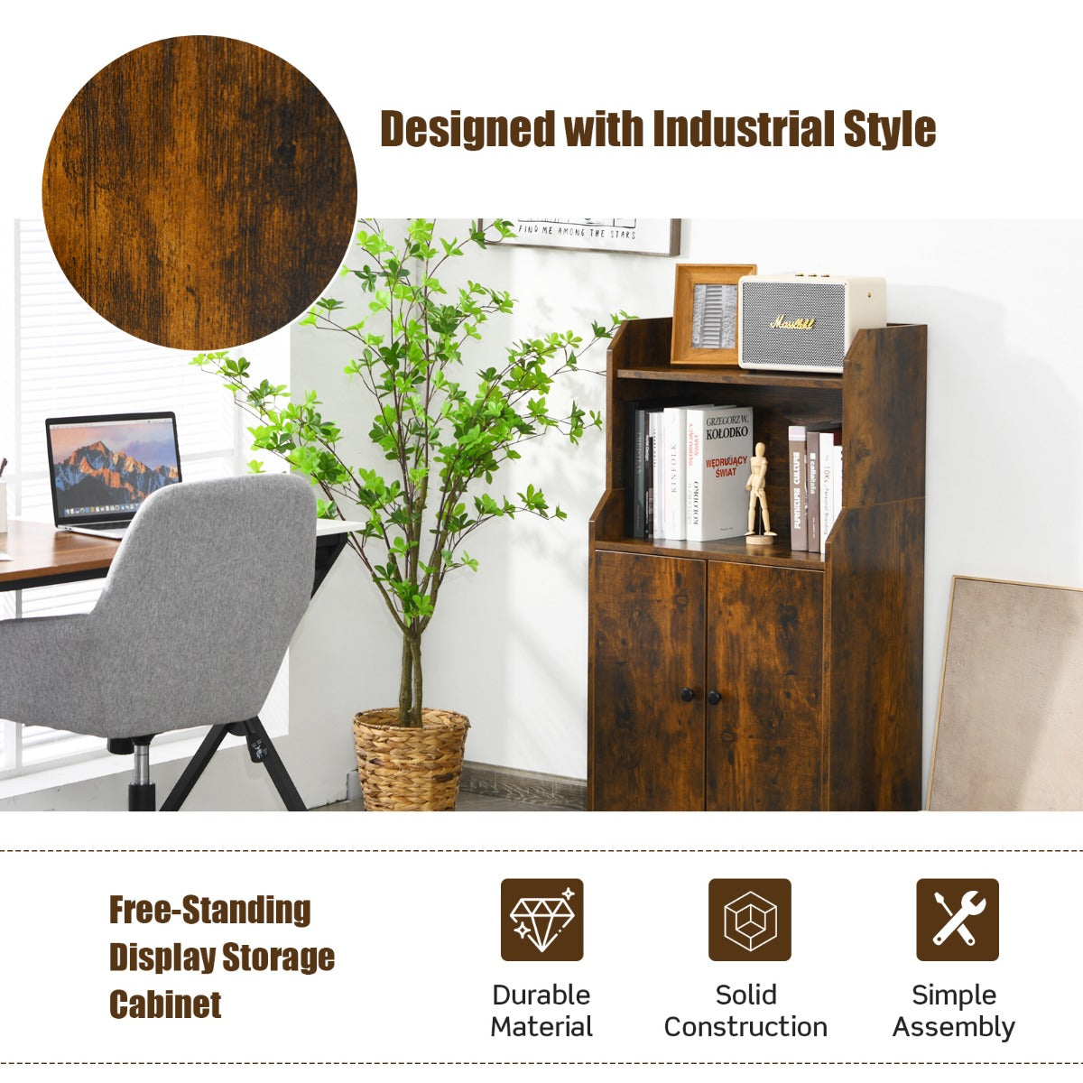 Multiple Storage Space: Our bookcase is designed with 2-tier open shelf for convenient access and bottom cabinet for flexible storage. It can accommodate a variety of stuff, such as potted plants, books, tableware, decorations, etc. Besides, 2 doors with doorknobs help to prevent dust and protect your privacy.