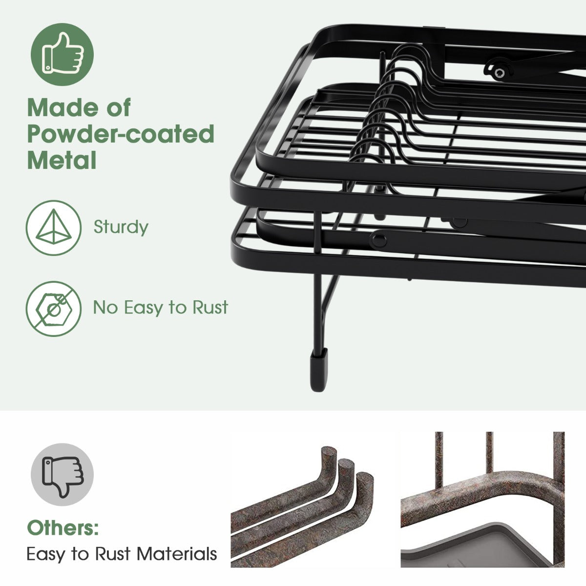 Durable & Sturdy Metal Frame: Made of powder-coated metal frame, our collapsible dish drying rack is sturdy and not easy to rust, which is able to serve you and your family for a long time. Meanwhile, anti-slip feet can also enhance overall stability and prevents your kitchen counter from being scratched.