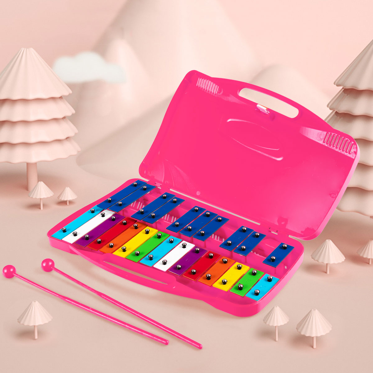 Flexible Use: Our 25 note xylophone is portable with suitcase-like outlook, allowing you to carry with effortlessly. Moreover, the retractable bracket on the backboard enables the xylophone to be used on more surface and offers better sound.