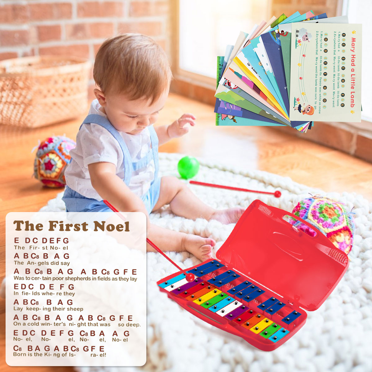 Accurate Tuned Xylophone: The xylophone has 25 tunes, providing wide range of musical sound, no half scales or too high pitches. Besides, the piano-like notes help children to have better understand of keyboard instruments.