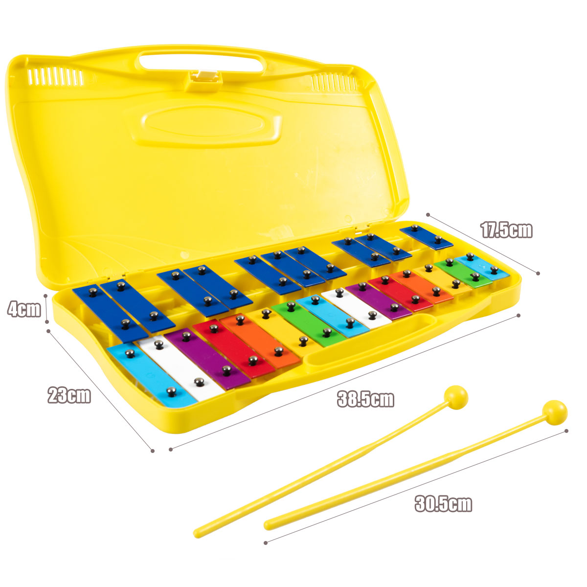 Our 25 note xylophone is one of your best choices for children musical enlightenment or entertainment! The colorful keys help children to distinguish color and improve their vision. Accurate tune gives children basic understanding of different musical scale and allows children to make musical creation freely. The portable design with lightweight case enable children to carry it with anywhere easily and the brackets on the backboard make it easy to set on many surface, improving the flexibility of the glockenspiel.