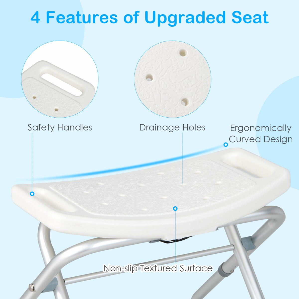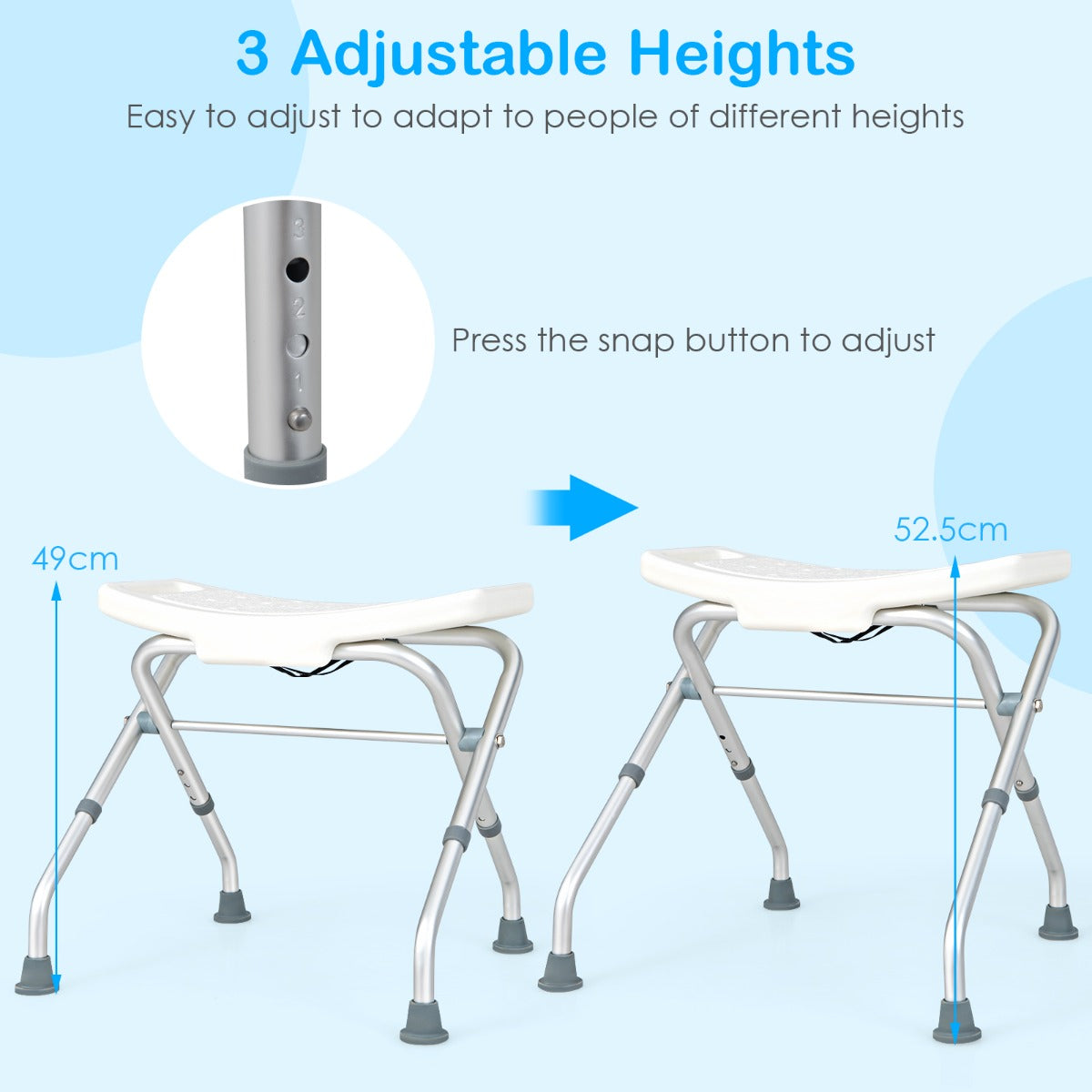 Easy to Fold & Wide Application: The bath chair is quick to fold, which is convenient for storage or traveling. Despite its foldability, the bath chair about 2 kg, which makes it effortless to carry. Also, this foldable bath chair is compatible to most bathrooms, including walk-in shower and bathtub.
