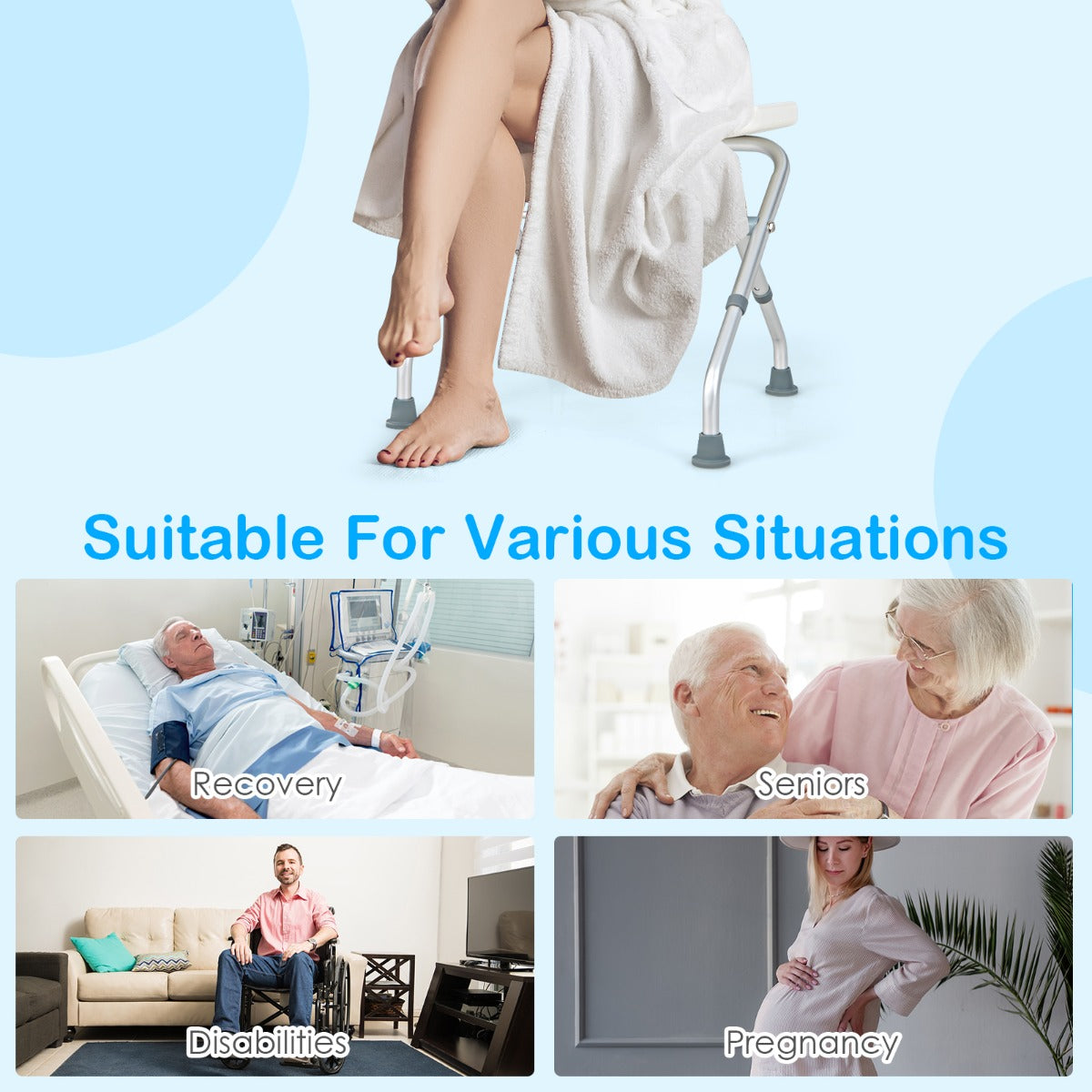 Enjoy Safe Shower Experience: Our shower seat allows users to sit while showering, which offers safe and comfortable showering for the elderly, seniors, disabled, pregnant women or individuals with limited mobility or recovering from surgery, preventing accidents during independently showering.