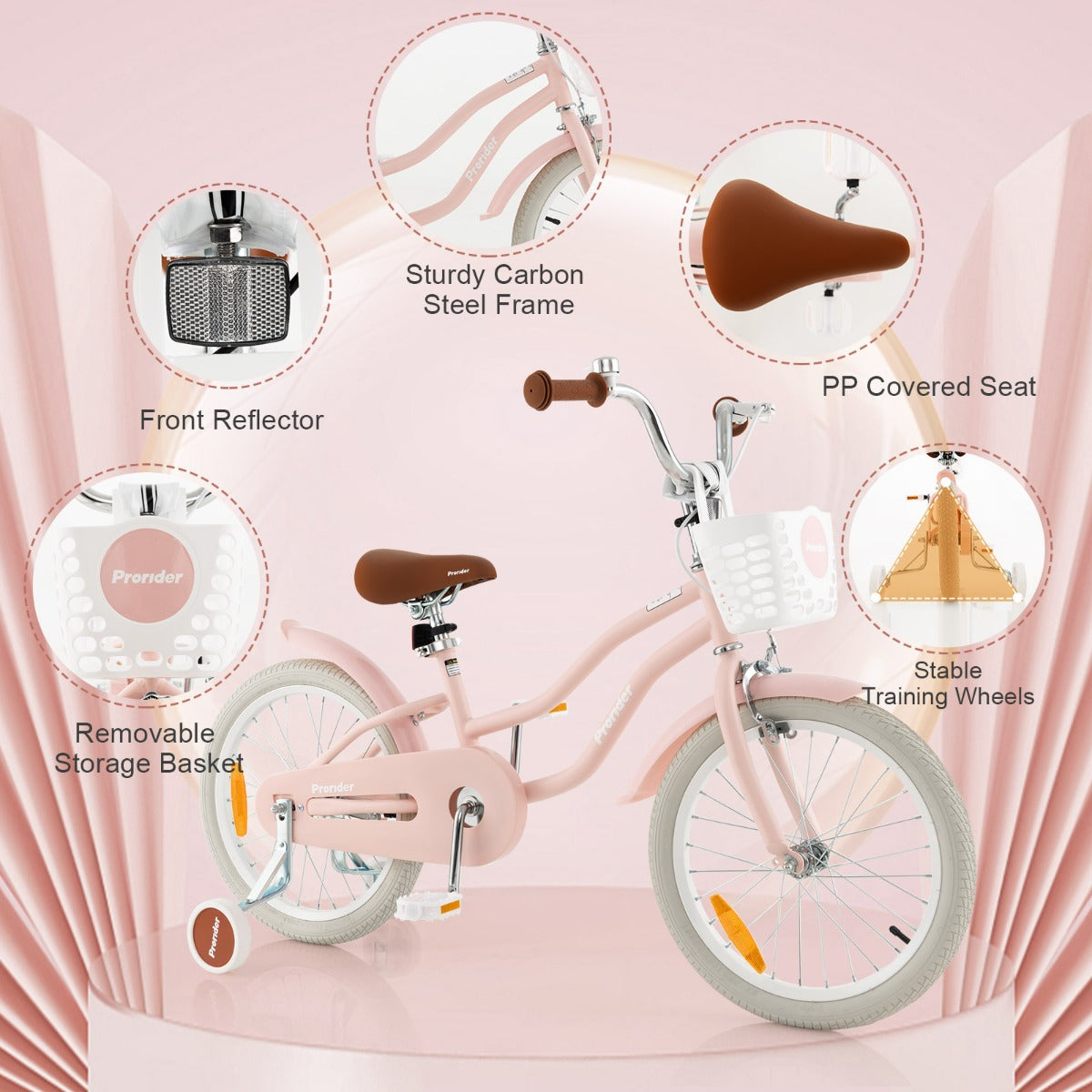 Aussies Market 36& 40& 46 cm Kid's Bike with Handbrake for 3-5/4-7/4-8 Years Old Pink