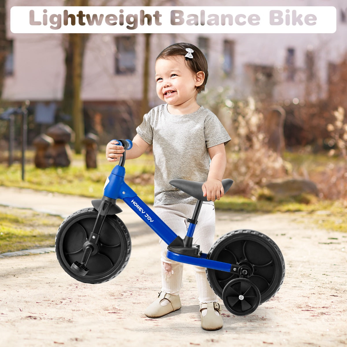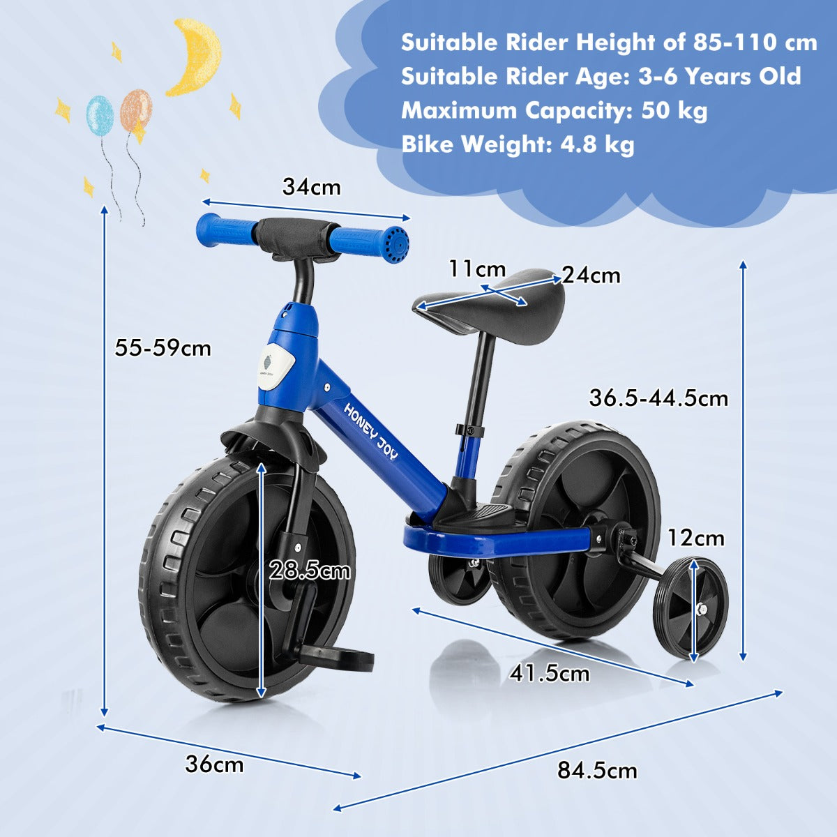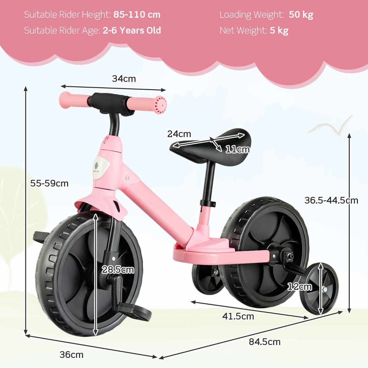 4-In-1 Kids Training Bike: Our multi-purpose kids training bike can be converted into 4 different modes: 2-wheel balance bike for 2-3 years old, tricycle for 3-6 years old, bicycle for 3-6 years old and auxiliary balance bike for 2-3 years old. Thanks to the removable pedal and training wheels, you can easily switch it into various modes according your actual needs.