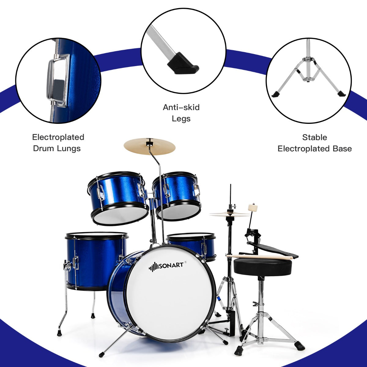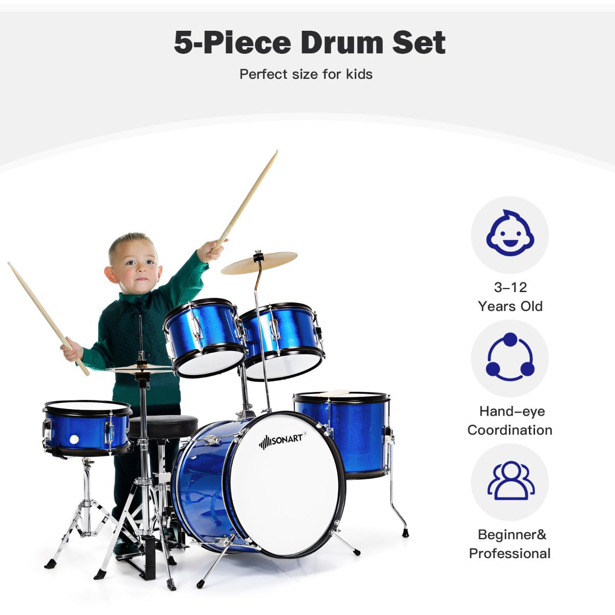 Kids' size drum set is suitable for both beginners and advanced learners.