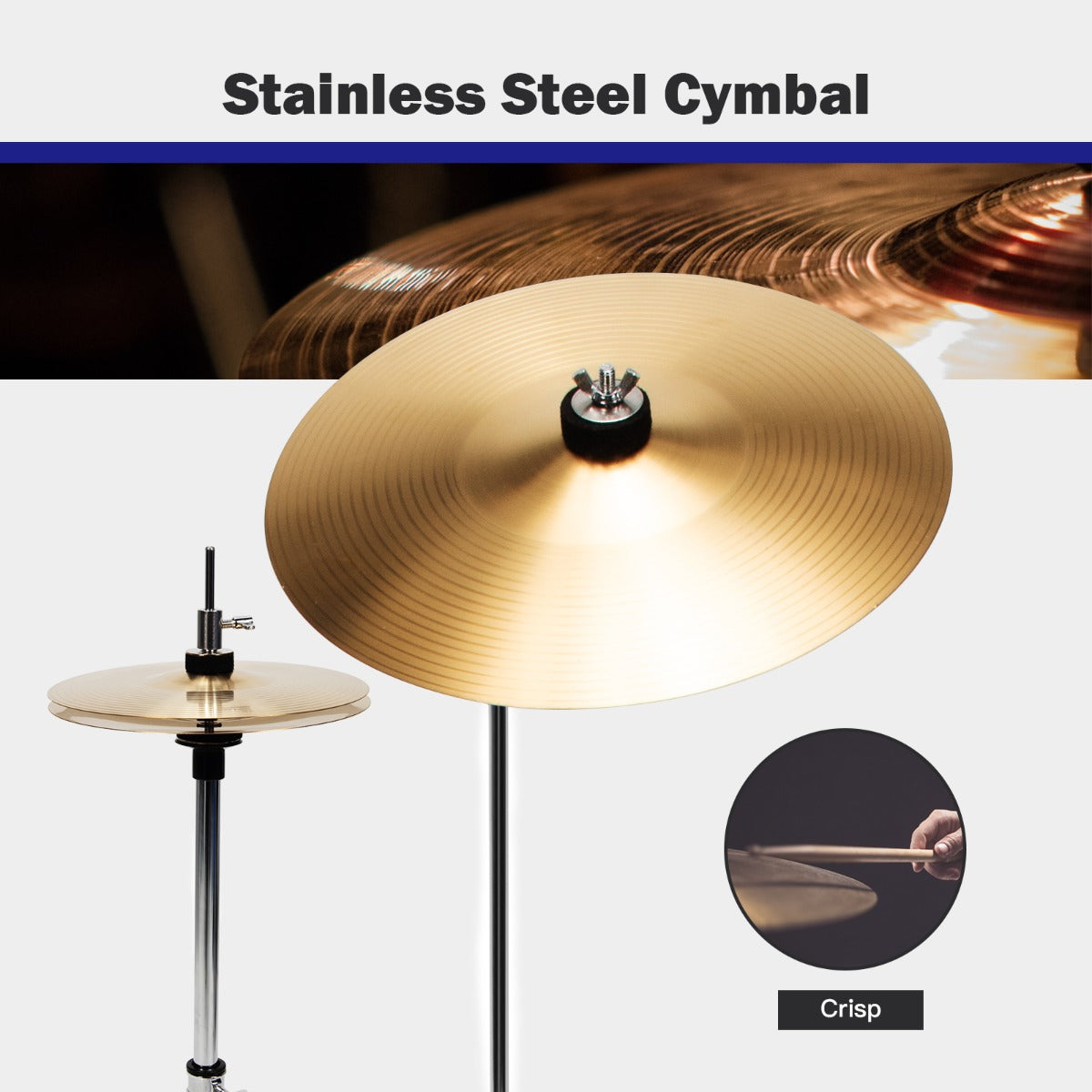 Durable Electroplated Framework: The drum lugs and the stands are all made of electroplated steel to ensure no rust, more wear-resistance for lasting quality. And the stainless steel cymbal makes a crisp and bright sound while being able to endure daily training.