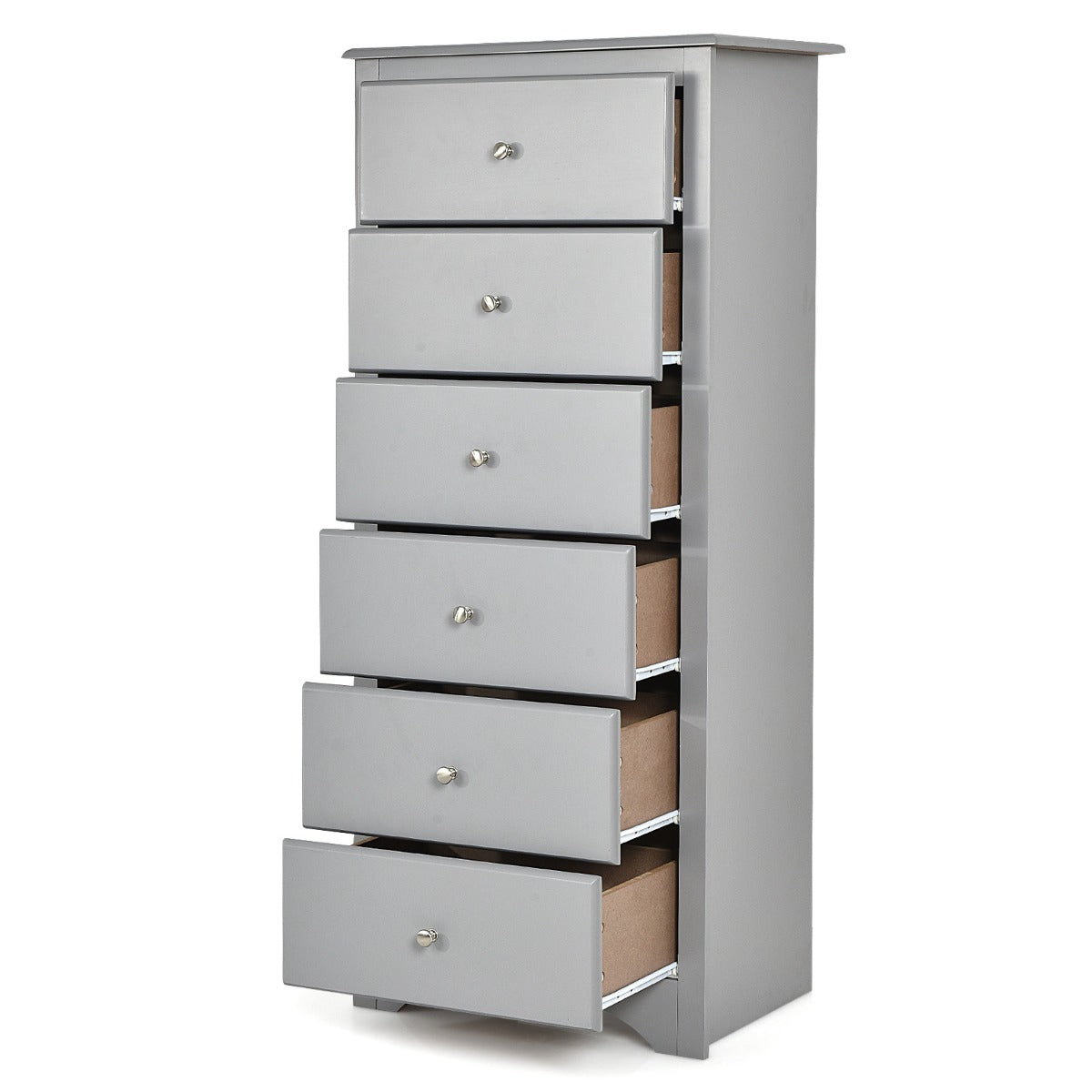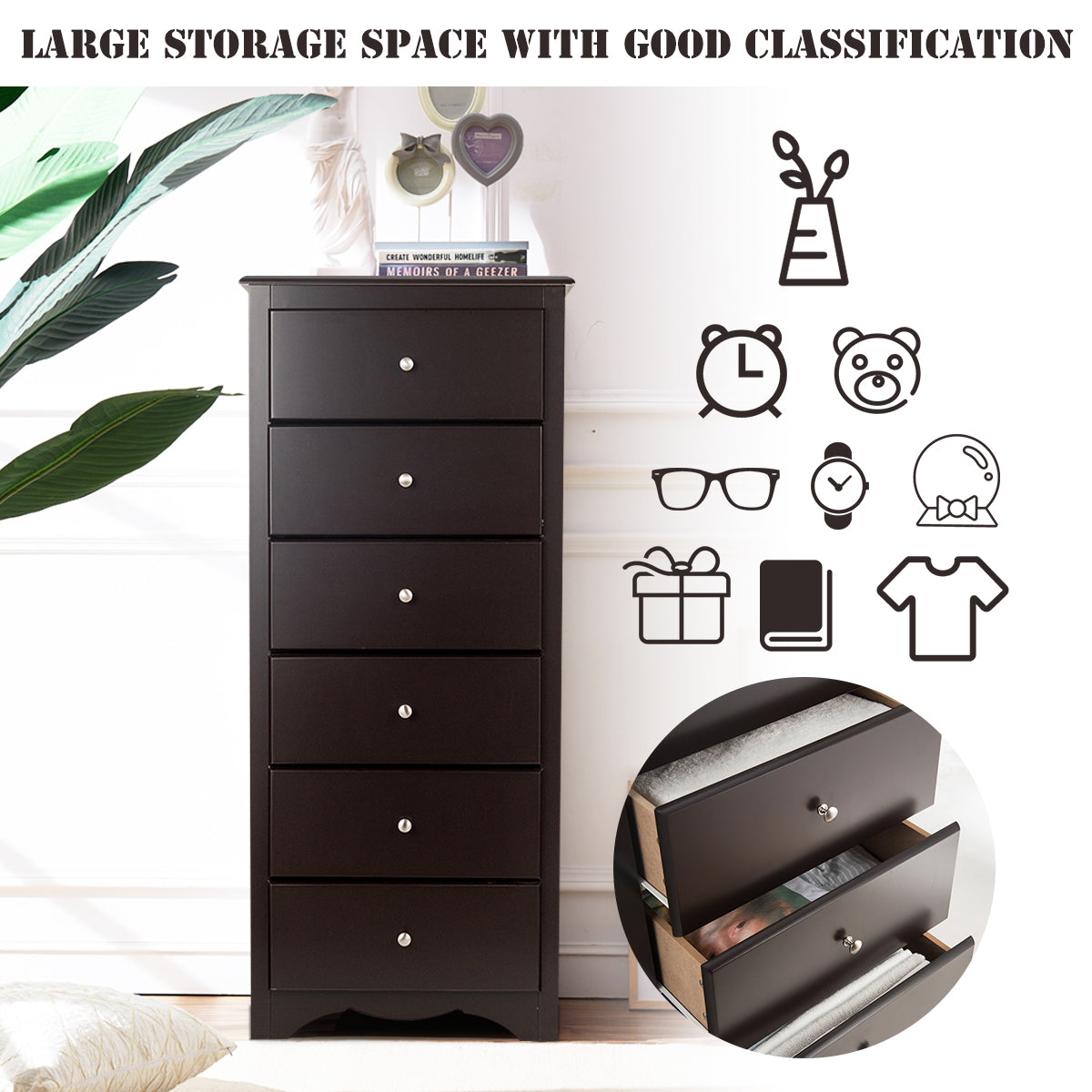 6 Drawers & Spacious Top for Storage: This chest of dresser comes with 6 deep drawers and spacious top that provide enough storage space for you to take in various sundries and keep your room tidy and neat. Besides, with 6 drawers with metal knobs that allows you to sort items efficiently and easy to find and access to them. What's more, using superior drawer slides for easy use and prolong service life.