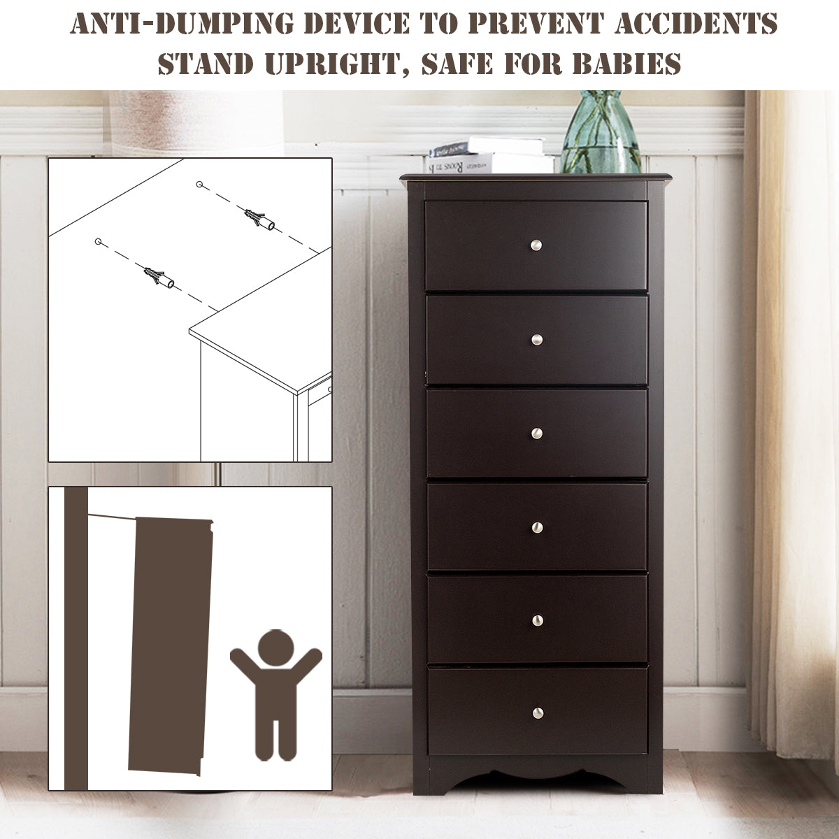 Safe and Stable to Using: This chest of drawers is equipped with an anti-reverse device that can be used to secure the cabinet to the wall for safe use. Don't worry about the cabinet falling down and hurting your family. More, unlike other chest, the bottom of our chest of drawers is wavy not only for added aesthetics, but also for improved stability.