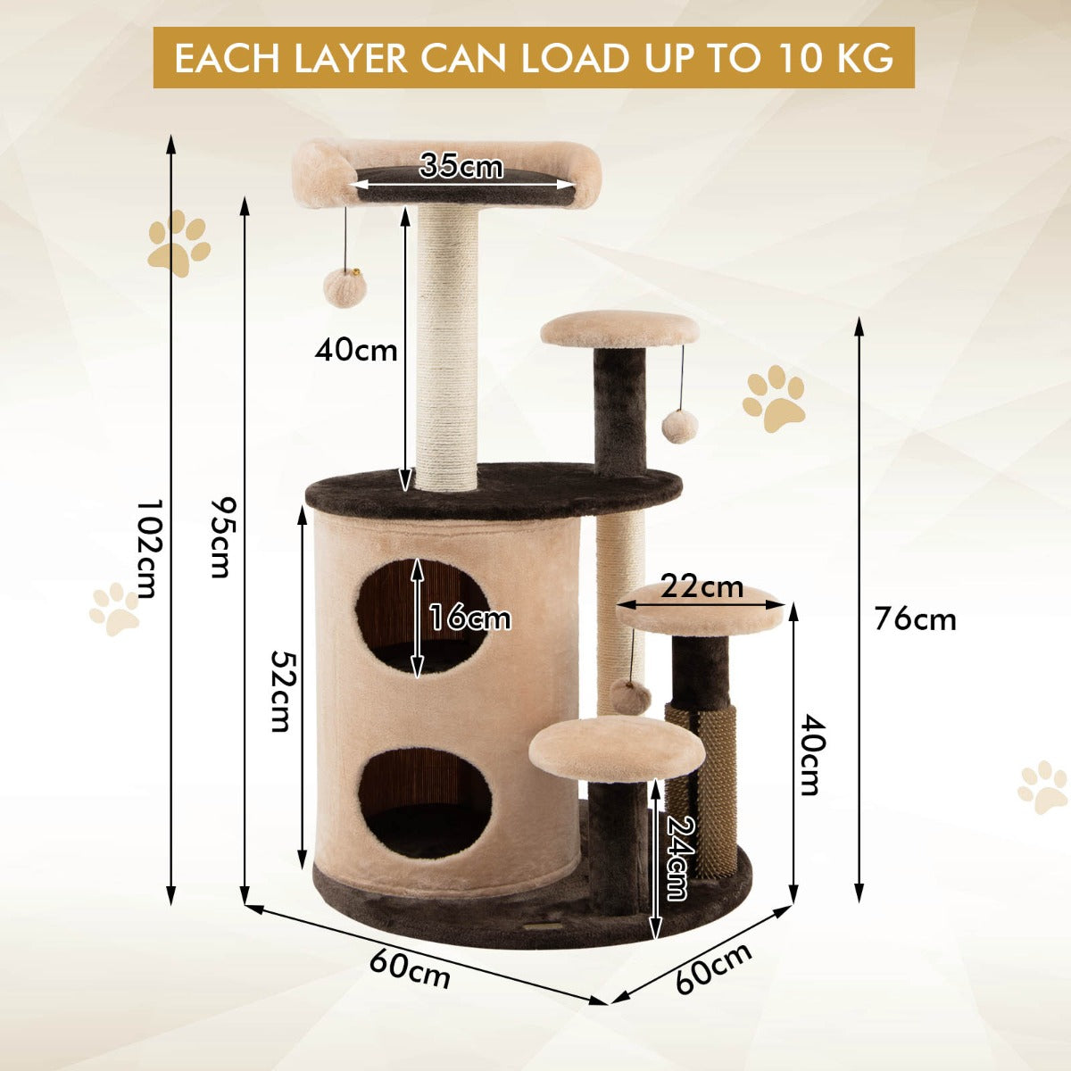 Stable Structure & Premium Material: The multi-layer cat tower adopts durable particle boards and a wide base, ensuring great stability and each layer can load up to 10 kg. In addition, all 4 round platforms are covered with soft plush, which can provide a warm & securing resting environment for your furry friends.
