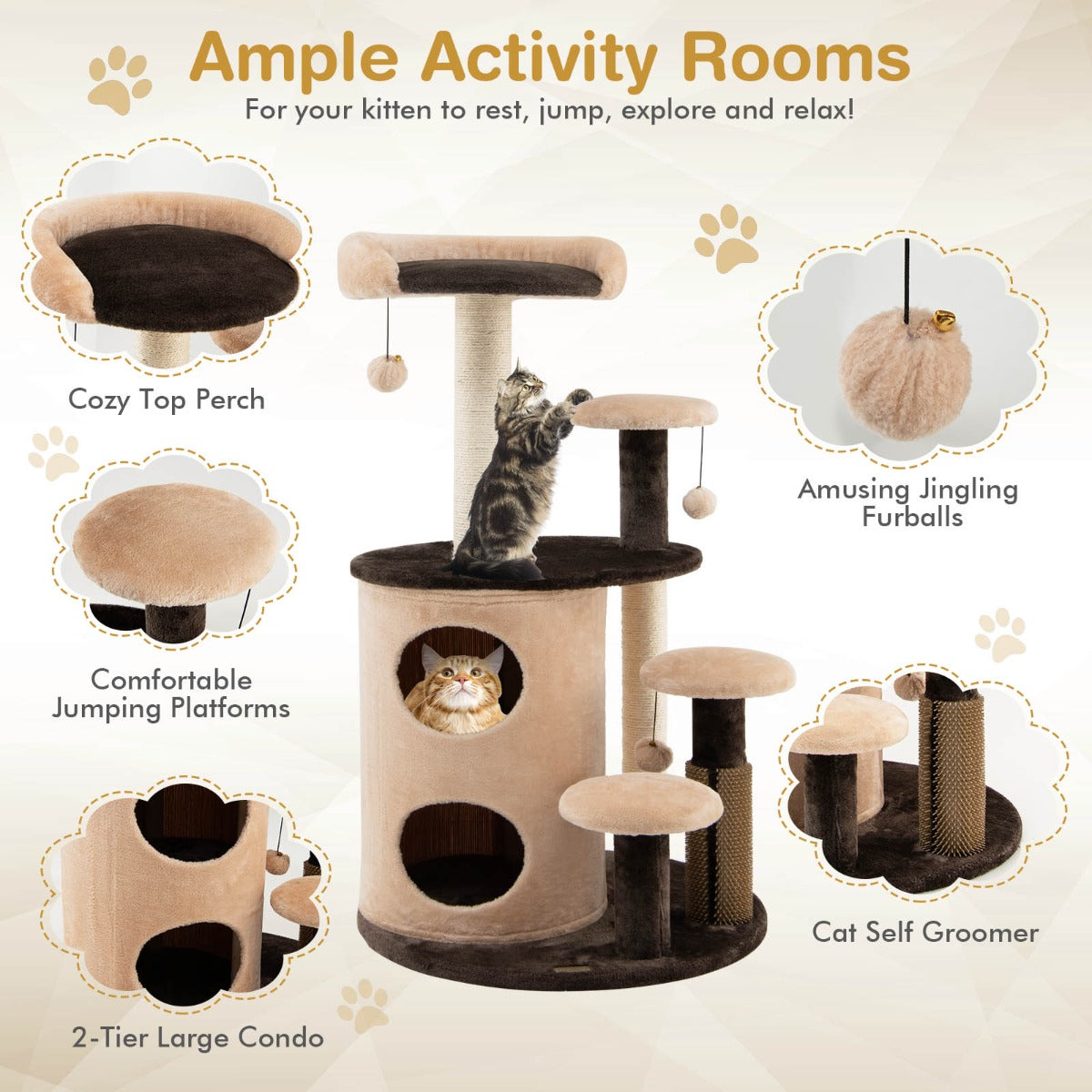 Healthy & Fun Design: The cat tree is designed with a cat self groomer that allows your cat to enjoy comfortable massages while cleaning and grooming their furs. And the durable scratching posts satisfy the kitten's instinct to scratch while protecting your furniture. Moreover, they are made of natural sisal ropes, which are healthy and safe.