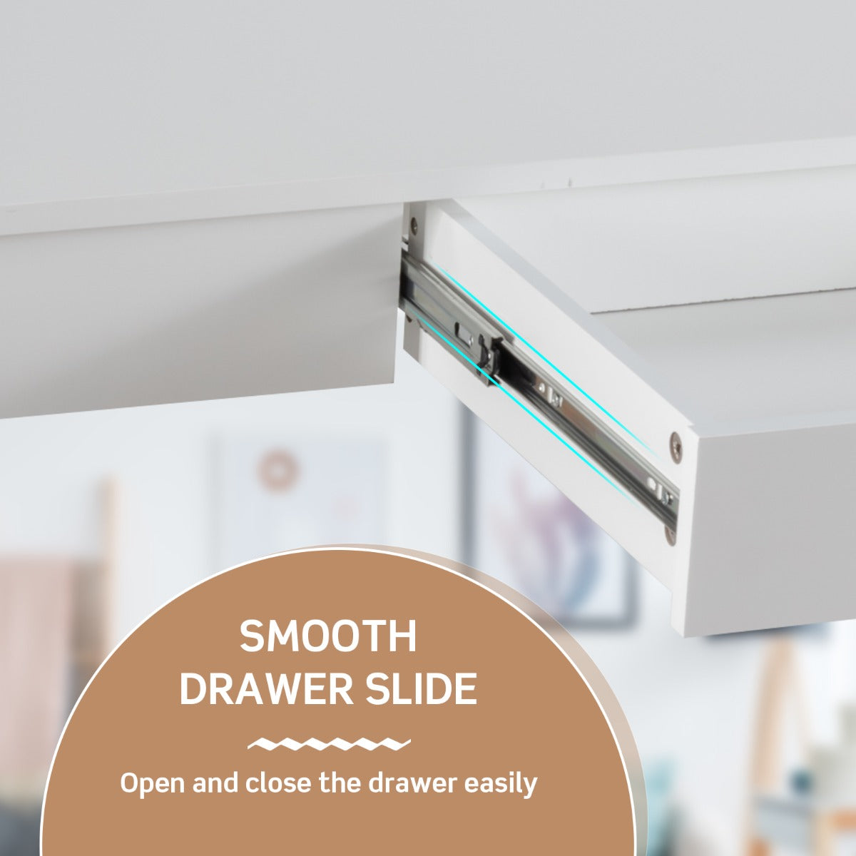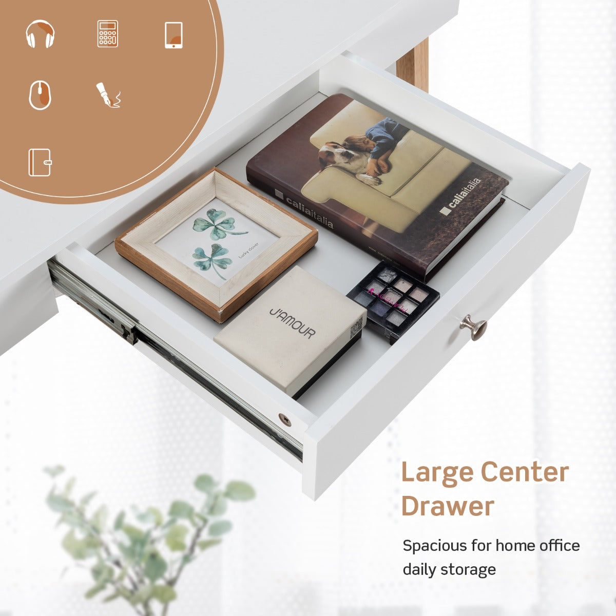Large Workspace & Storage Drawer: The spacious desktop offers ample space to place your laptop, monitor, cups, mirror or other daily items, ensuring that you have enough space to work or make up with comfort. Besides, the desk comes with a large drawer to store your personal items and keep your desktop more tidy and clean.