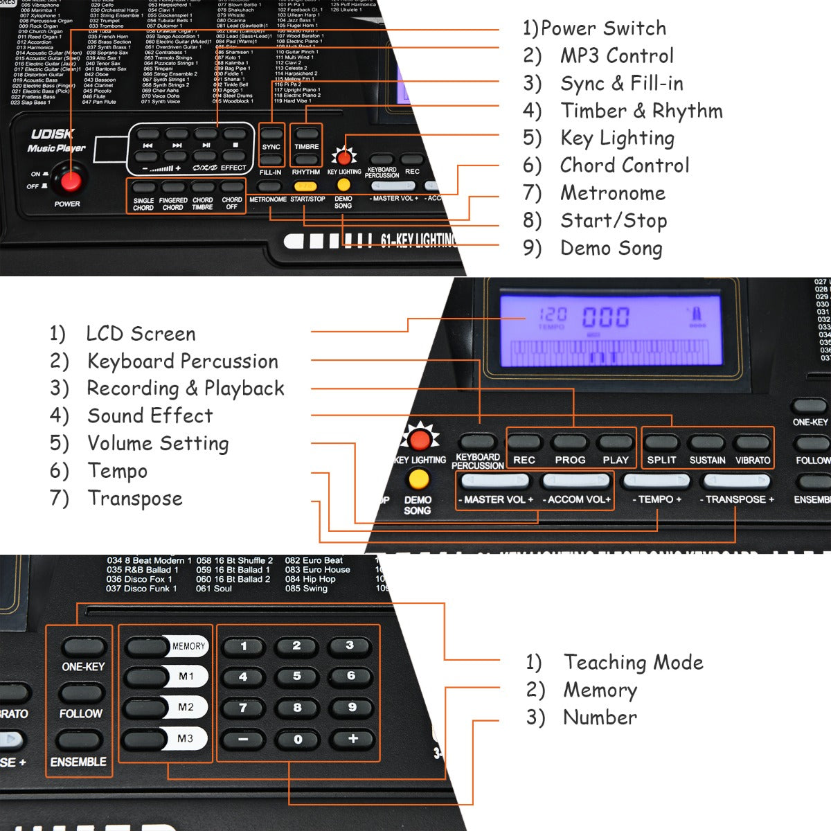 Intelligent Teaching for Beginners: The design of imitation piano keys is more sensitive and textured with full resilience, which is suitable for beginners' practice or professional performance. More importantly, the 61 key electric piano with illuminated keyboard, clear LCD display and teaching modes helps to learn skills quickly.
