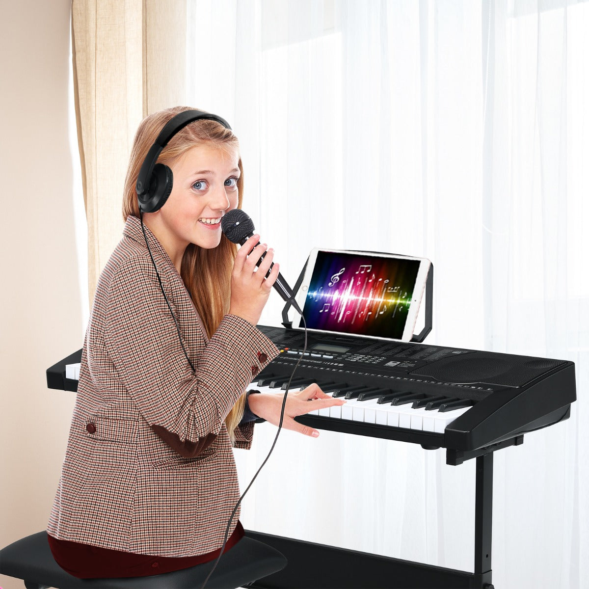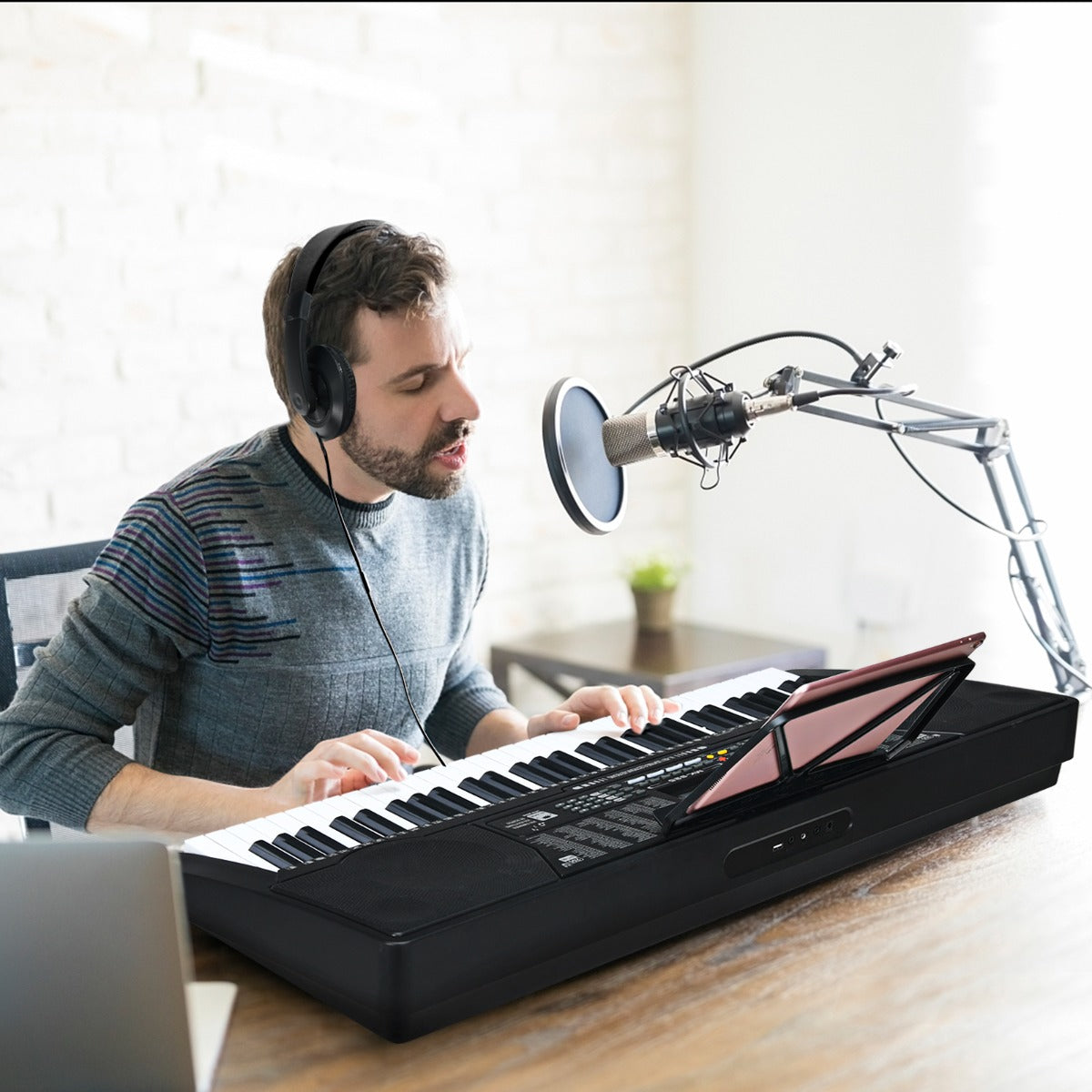 Adjustable Stand and Foldable Stool: The piano stand is available to reach 3 levels of height adjustment to meet your different needs. The upholstered foldable seat not only makes you feel comfortable playing for a long time, but also makes it easy to store. Additionally, the attached microphone enjoys the joy of singing while playing.