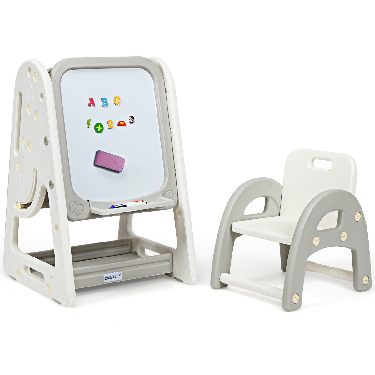 Versatile Table with Bookcase and Blackboard: The table is multifunctional with a bookcase to place storybooks and have a place to study, play and read. The back of the table is equipped with an erasable magnetic whiteboard for drawing, with a tray to carry the 4 colored whiteboard pens and an eraser as a gift.