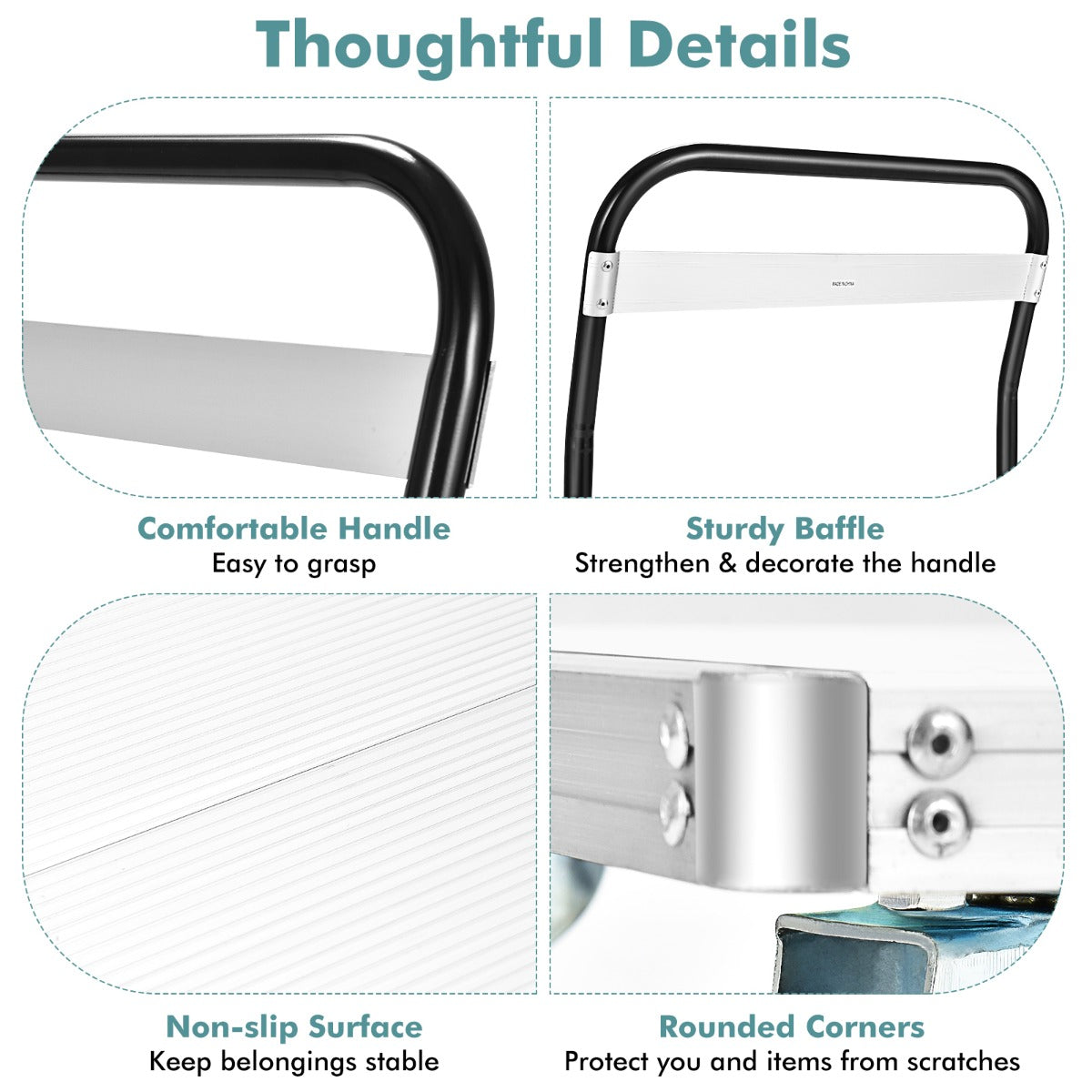 Thoughtful & Safe Design: The non-slip platform surface keeps belongings stable during movement, and the rounded corners protect you and your items from scratching, maximizing safety. What's more, the sturdy baffle decorates and strengthens the handle effectively.