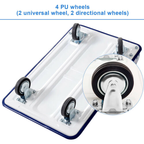 Excellent Mobility: This portable and lightweight platform cart makes the moving process much easier. Featuring a comfortable handle grip and the 360 degree rolling wheels, it would be easy to carry and maneuver a heavy load of 149.69kg weight with this dolly. You can pull as well when loading heavier stuff.