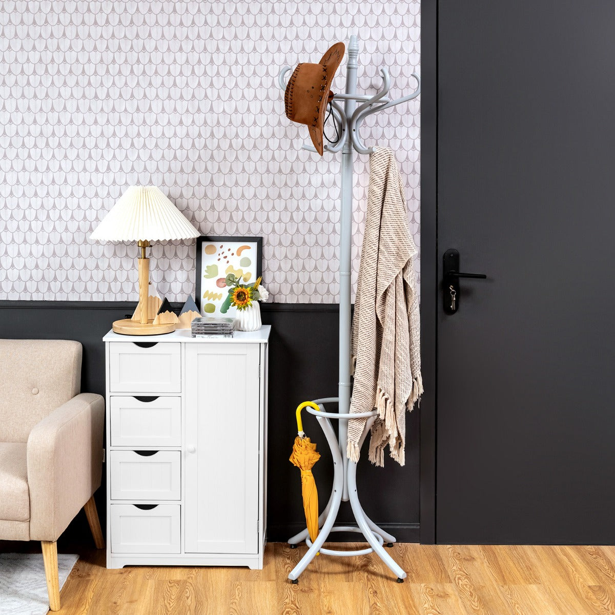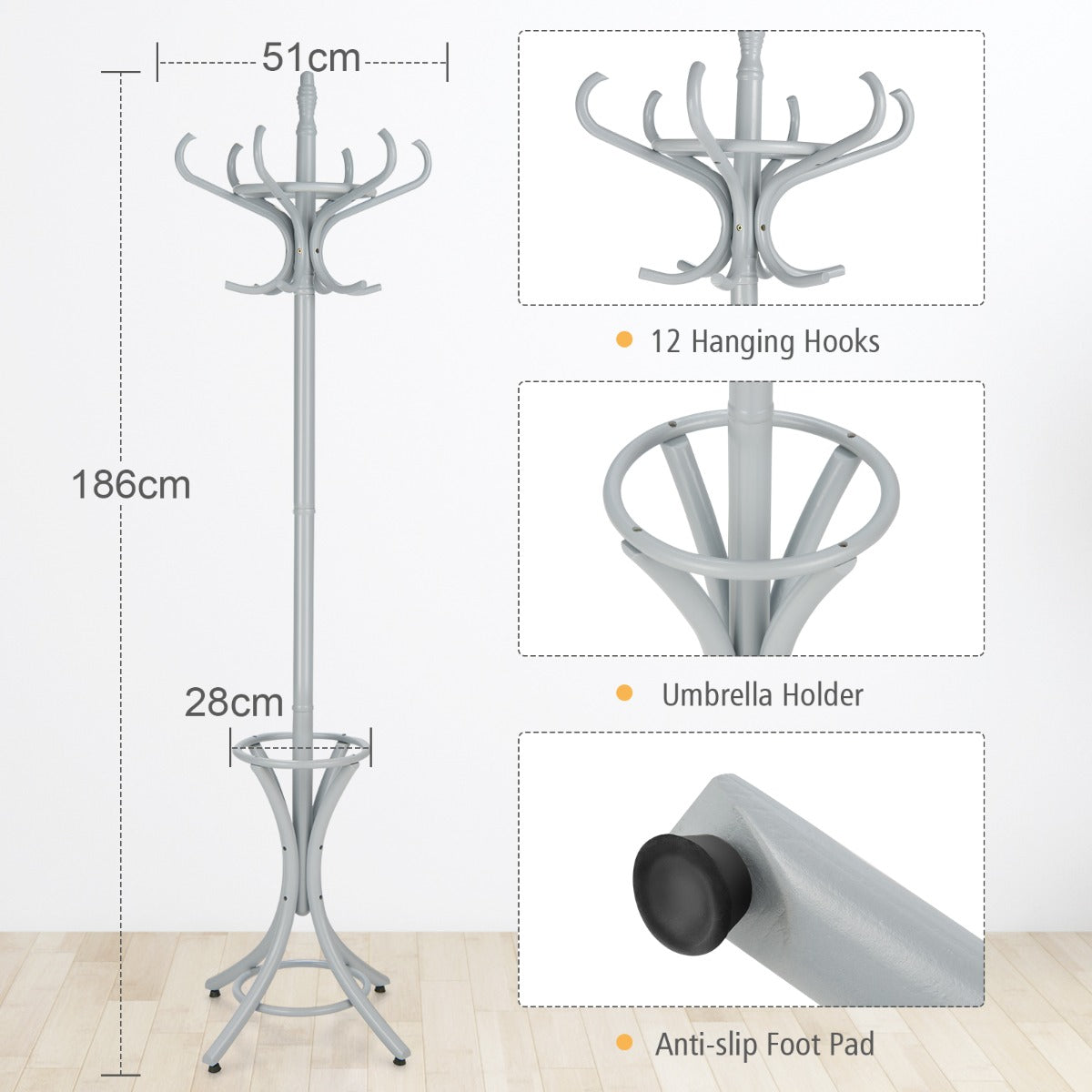 Large Space for Storage: This clothes rack has 12 hooks so that you can hang clothes, pants, hats or bowls on it. In addition, this clothes rack also has an umbrella stand, so it offers you rich storage space for an umbrella when you use it. Classic & Elegant
