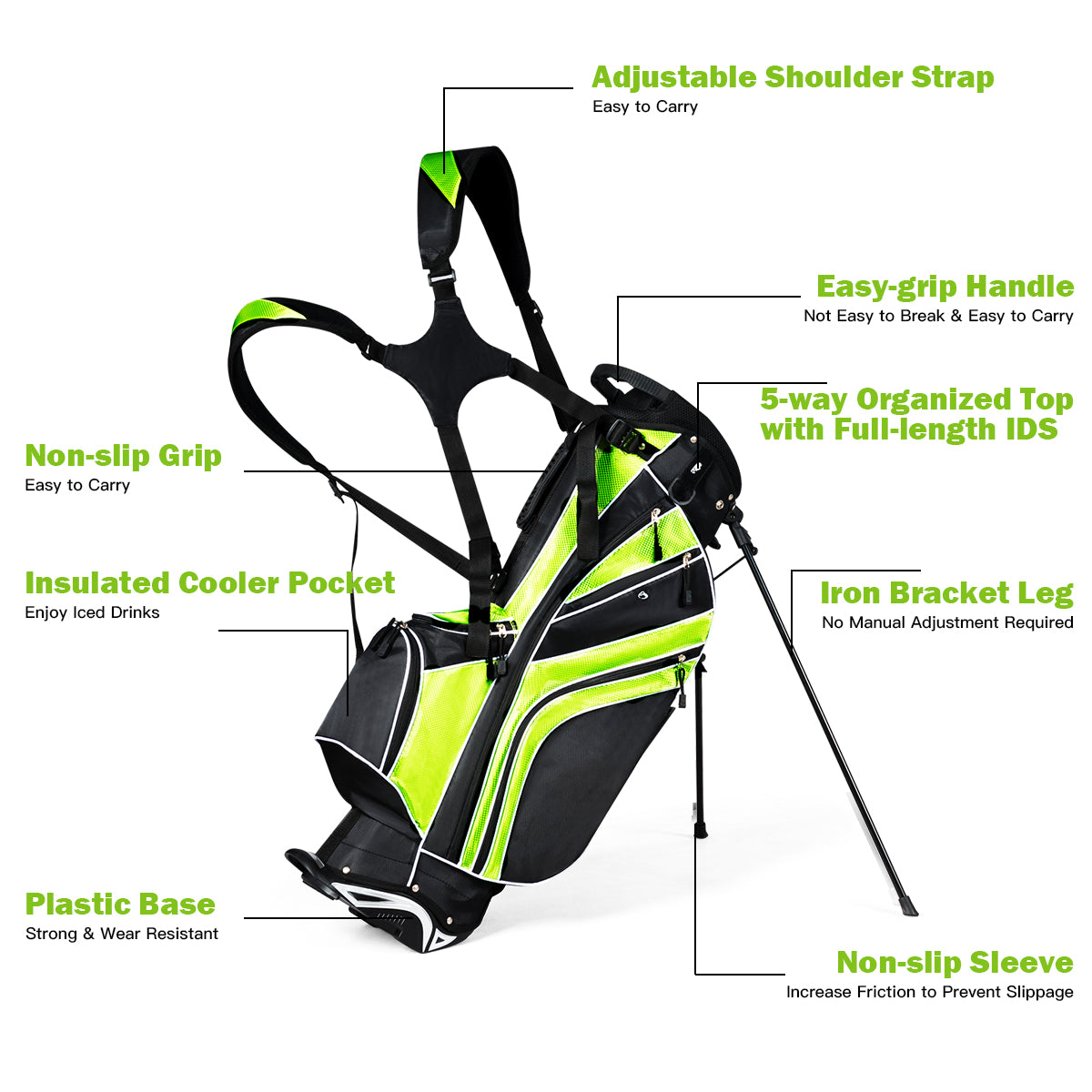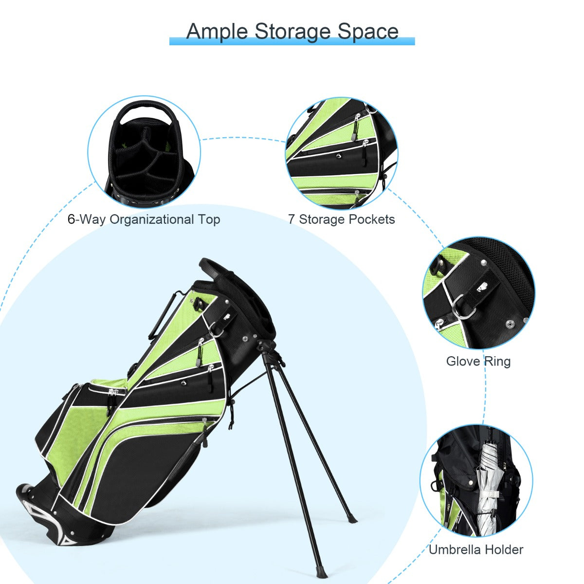 Reasonable Capacity: Featuring light weight of only 2.7kg and portability, golf stand bag 6 way dividers surprisingly offers you enough space to accommodate your golf clubs. There are 7 pockets on this bag to bring you additional storage space, which you can put various accessories in.