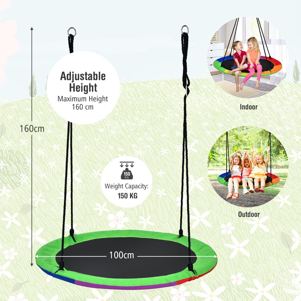 All-Year-Round Fun & Versatile Uses: This 100 cm saucer tree swing is a funny outdoor and indoor activity for children of any age, providing a perfect space to play, read, listen to music, and daydream, relax, and enjoy a happy time with friends. Besides, it can be the perfect addition to your backyard, park, playground, and home.
