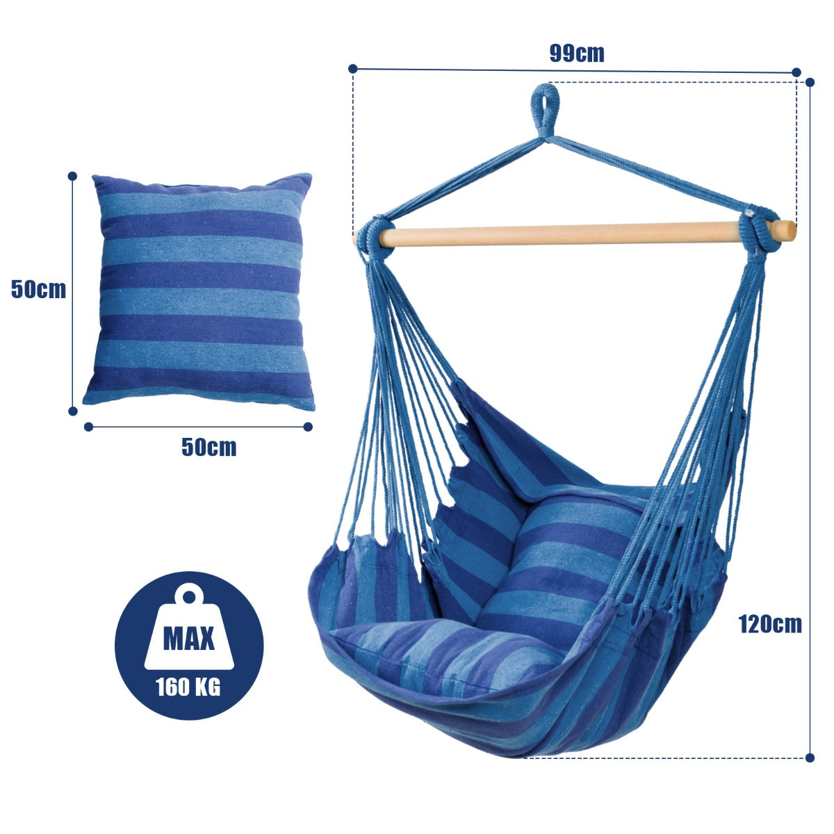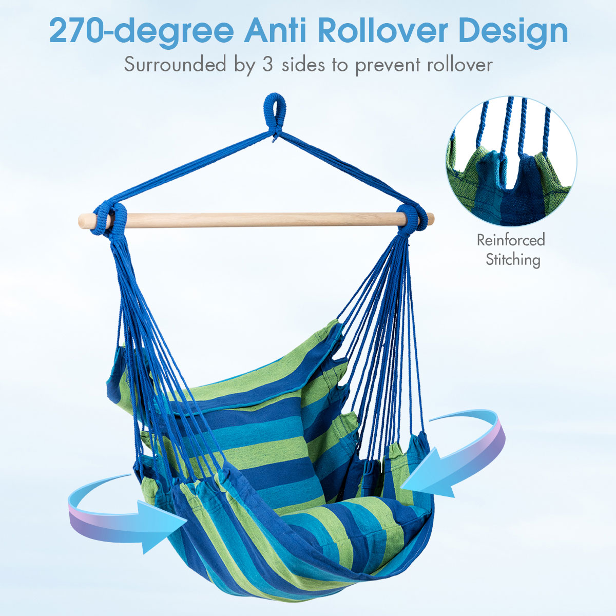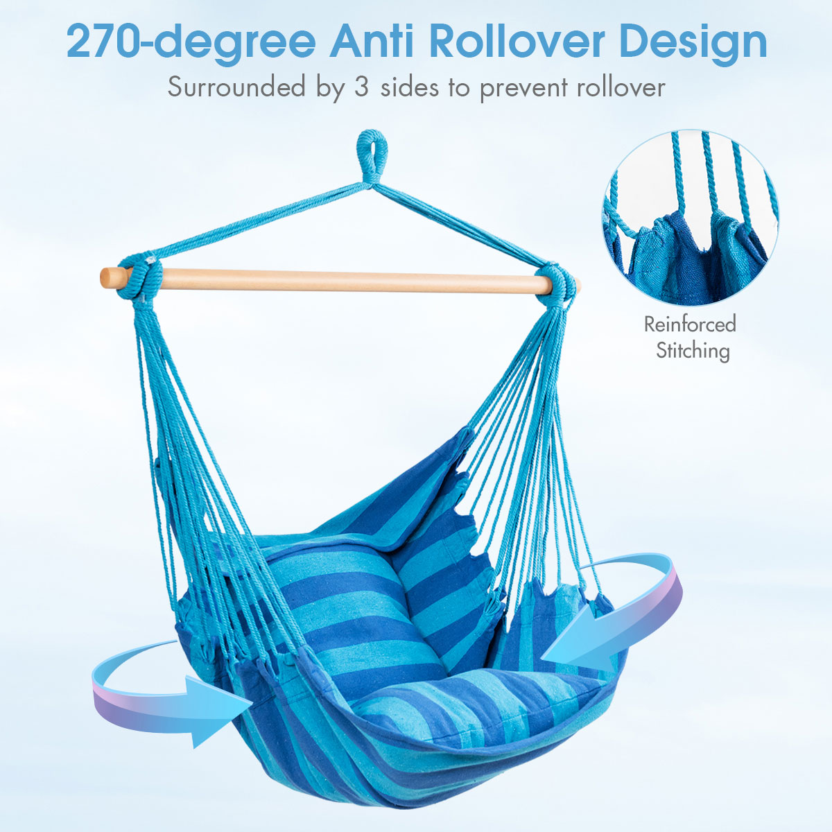 Wide Application: This hammock chair with cushions is uniquely designed and will be perfect for relaxing in your patio, yard, garden or deck. You won't feel tired for no matter how long you sit in it. In this way, you can meditate or take a nap comfortably. Moreover, its vibrant color will also add special charm to your home.