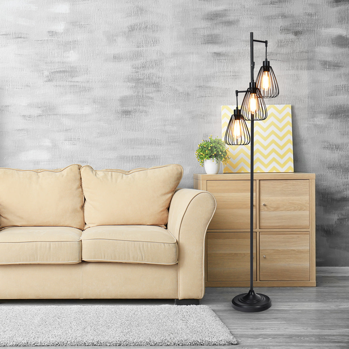 If you're opting for a lamp that acts as a decor and provides a warm bright atmosphere, then our standing floor lamp is a must for you. It has been carefully designed to achieve all black metallic construction. And, the metal wire cage to it acts as a great addition to create a unique atmosphere around it. Besides, our industrial cage floor lamp is fully capable of providing adequate brightness to your house. Apart from that, the assembly is straightforward with the provided detailed instruction. And also, it comes with all the required accessories to install instantly. It's waiting for you at the stores!