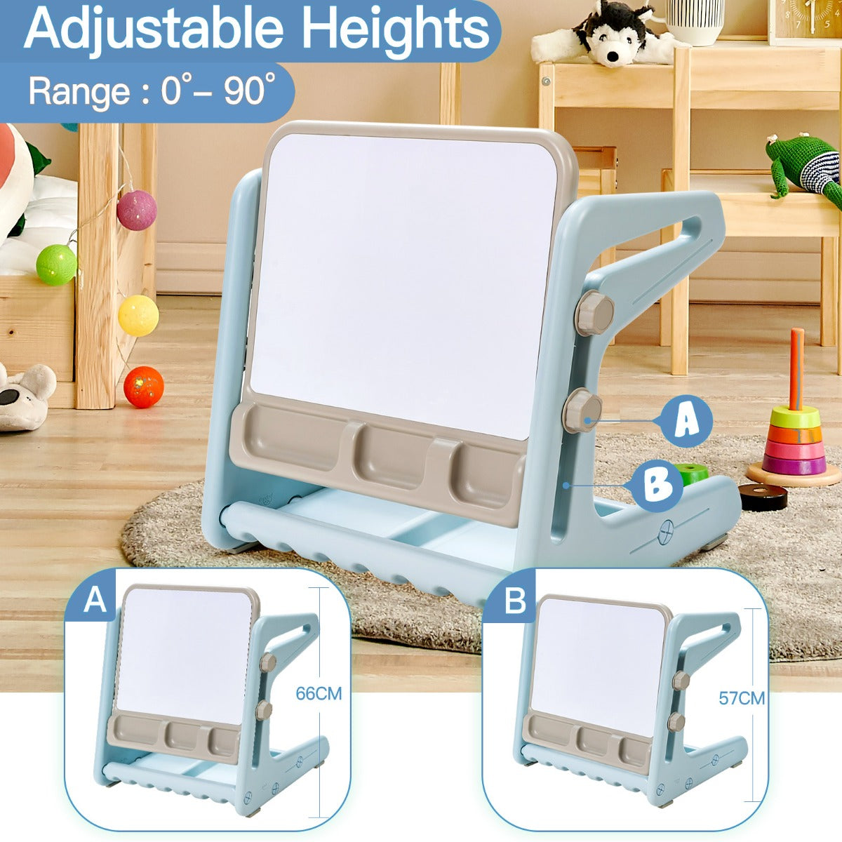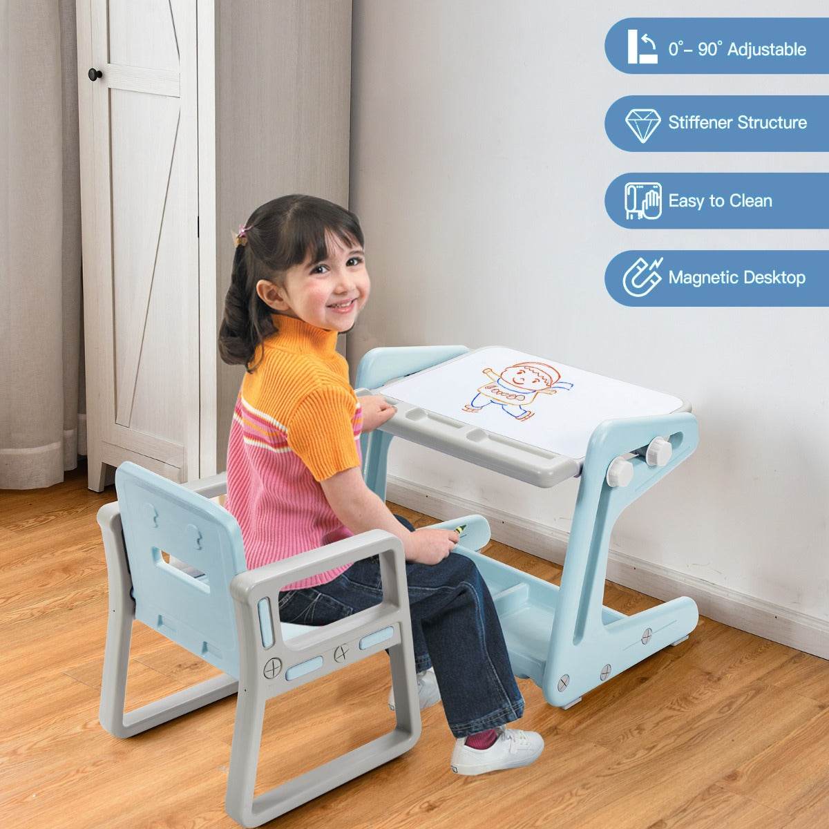 Adjustable Tabletop: The multifunctional drawing table with a chair can be switched between a table and a standing drawing board. The sliding tabletop allows you to freely adjust the table top angle range from 0 to 90° as needed. It can be either a flat table for learning or vertical drawing board for painting.
