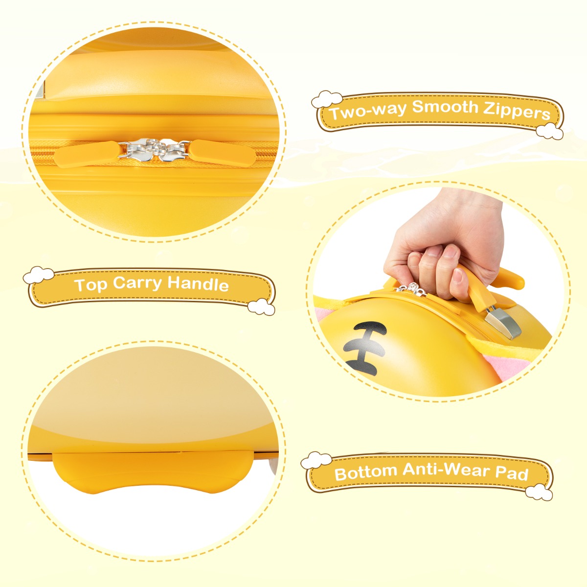 Adorable Animal Pattern: This kids carry on luggage is designed in cute animal appearance which even features fluffy ears. This carry on luggage will be a great gift choice and is suitable for boys and girls, which creates their own packing solution and helps them learn to pack up.