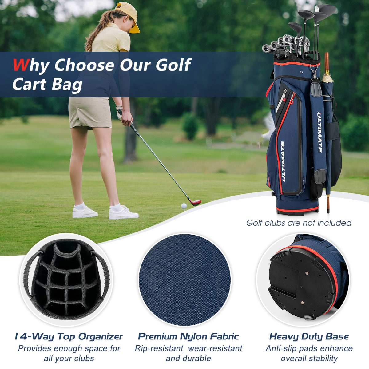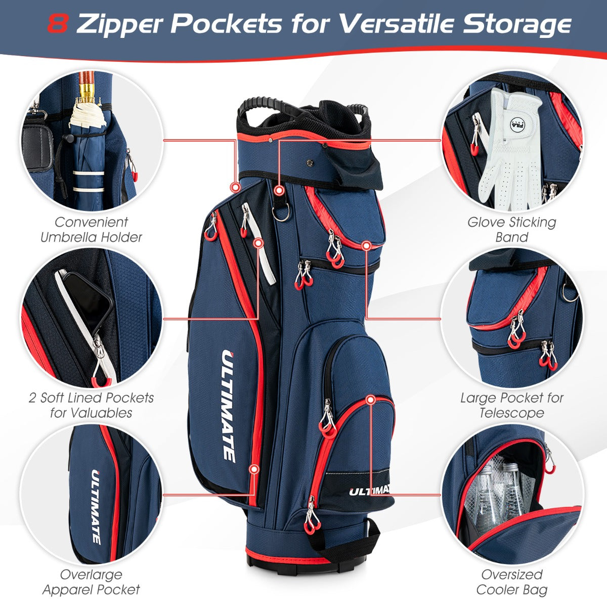 14-Way Top Club Organizers: This golf stand bag features a 14-way top, which can easily hold all the clubs you need. What's more, with 14 full-length individual dividers, it can keep your golf clubs well organized and protected from scratching against each other.