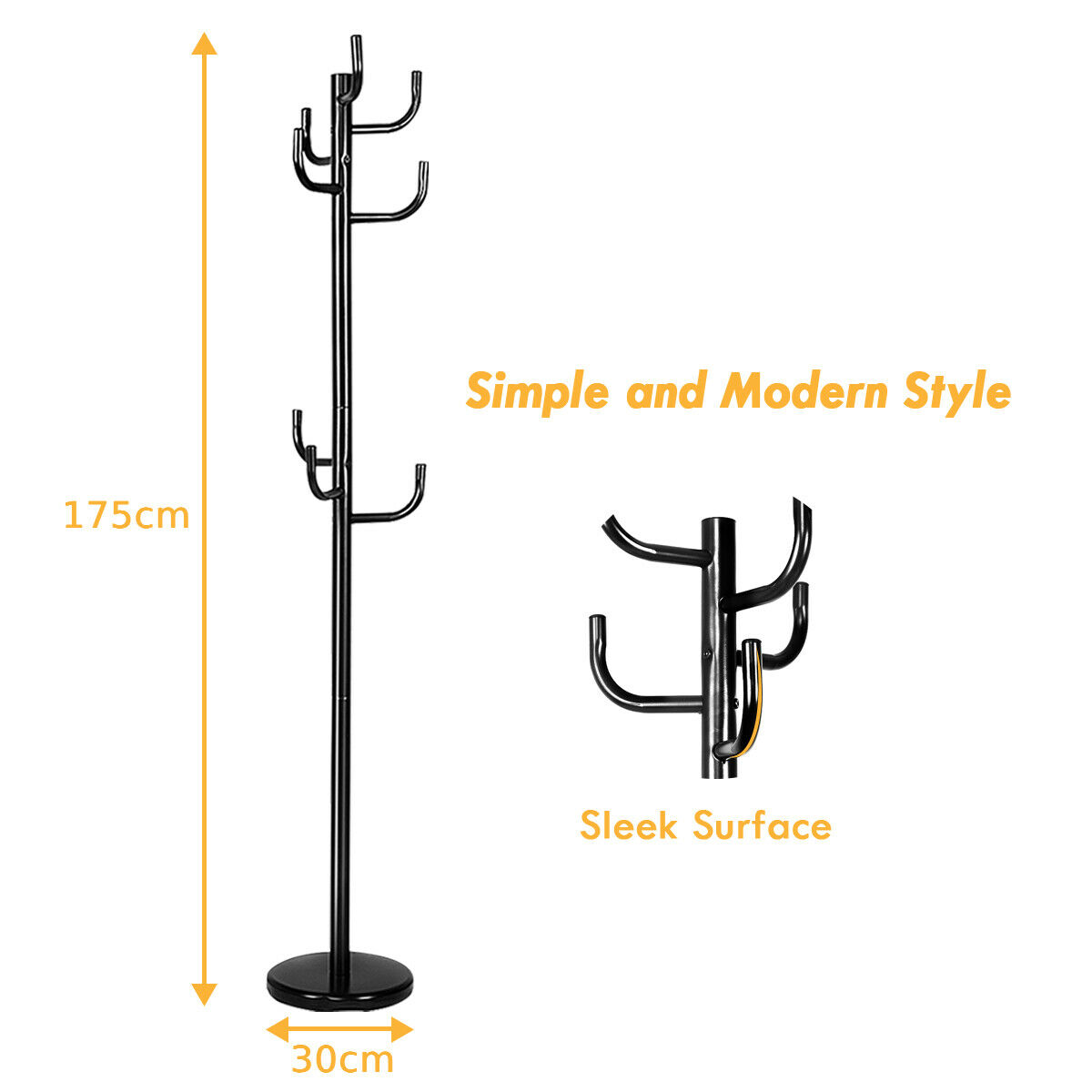 This is our classic style metal coat hat Rack which is a perfect stable free-standing hanger for coats, clothes, hats, shoes, umbrellas, purses and so on. Features a quality metal construction and fantastic round Base, this hall stand will make your room more neat and beautiful. Don't hesitate to bring it home!