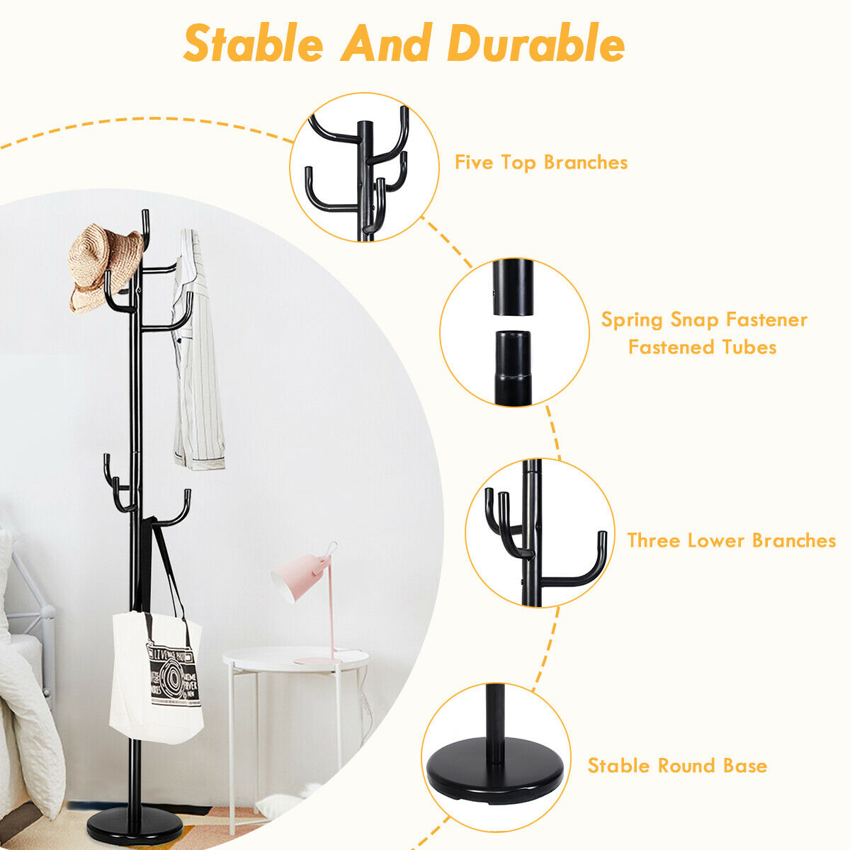 8 Hooks with Protective Ends: This freestanding coat tree features 8 hooks that allow you to hang multiple clothes at the same time, great for the whole family. In addition, each hook is equipped with protective ends, preventing the clothes from scratching for better protection.