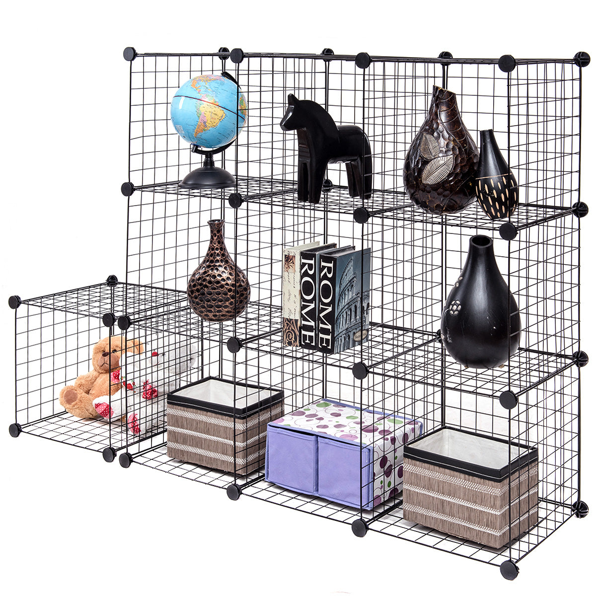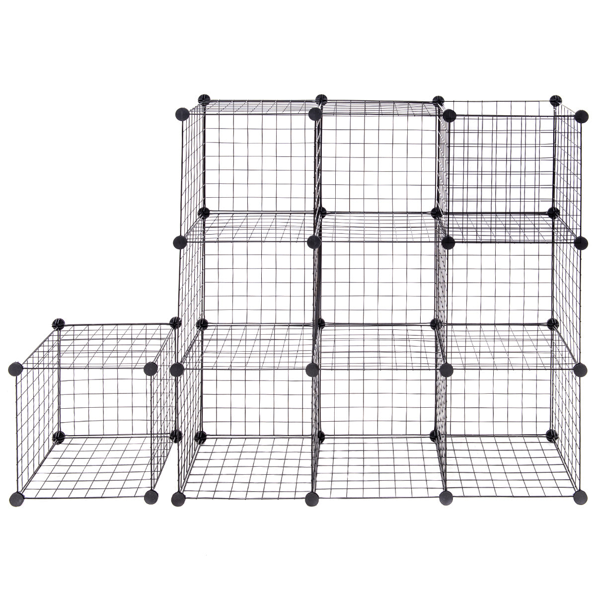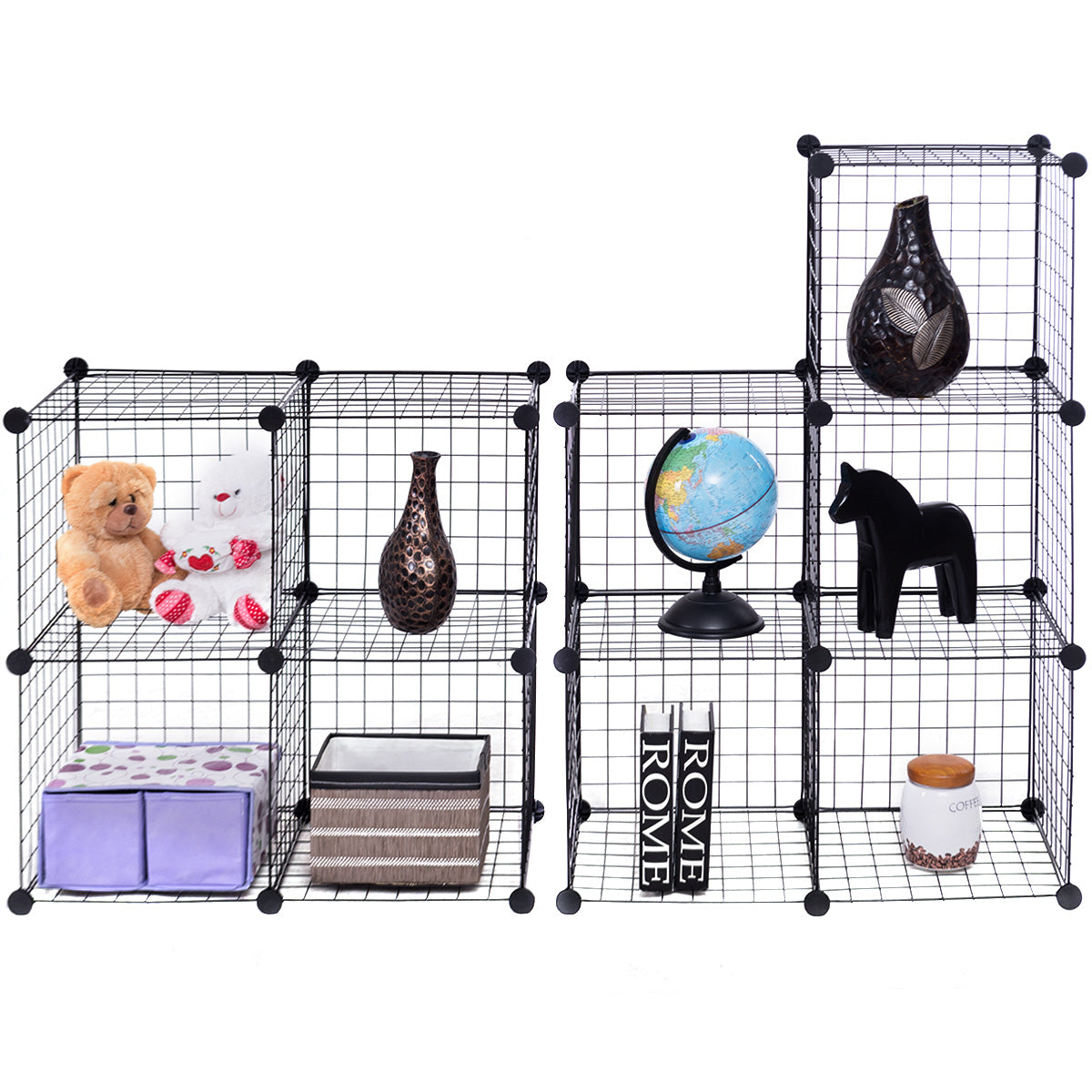 These are our brand new and high-quality 12PCS set wire storage cubes, made from strong and slightly flexible wire that can withstand plenty of weight and matching heavy connectors for holding the wire grids together. The cubes are interlocking giving you multiple stacking options so let your imagination take over. Various cube configurations can be made with this flexible design. It can keep your home neat, tidy and organized, and offer ultimate convenience in household organization. This storage unit is simple and easy to assemble and will provide you with a very sturdy, fully functional storage shelf. Don't hesitate to buy it.