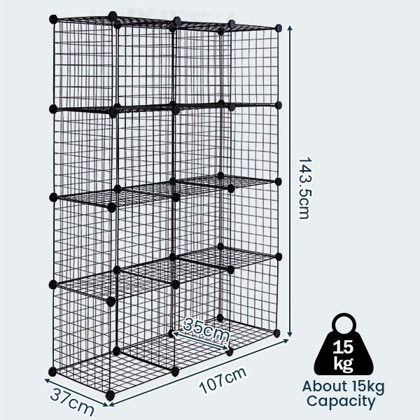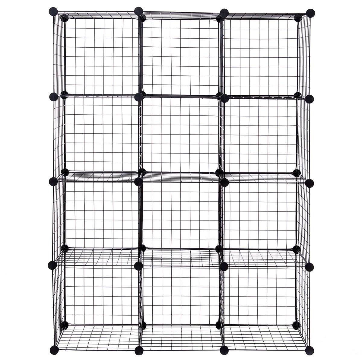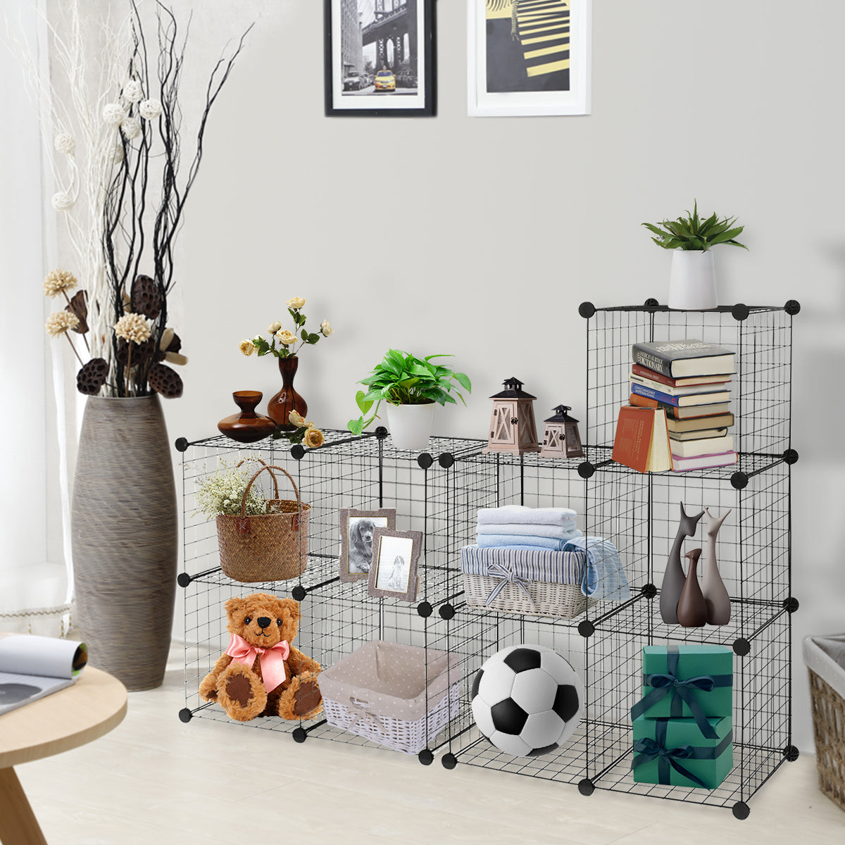 These are our brand new and high-quality 12PCS set wire storage cubes, made from strong and slightly flexible wire that can withstand plenty of weight and matching heavy connectors for holding the wire grids together. The cubes are interlocking giving you multiple stacking options so let your imagination take over. Various cube configurations can be made with this flexible design. It can keep your home neat, tidy and organized, and offer ultimate convenience in household organization. This storage unit is simple and easy to assemble and will provide you with a very sturdy, fully functional storage shelf. Don't hesitate to buy it.