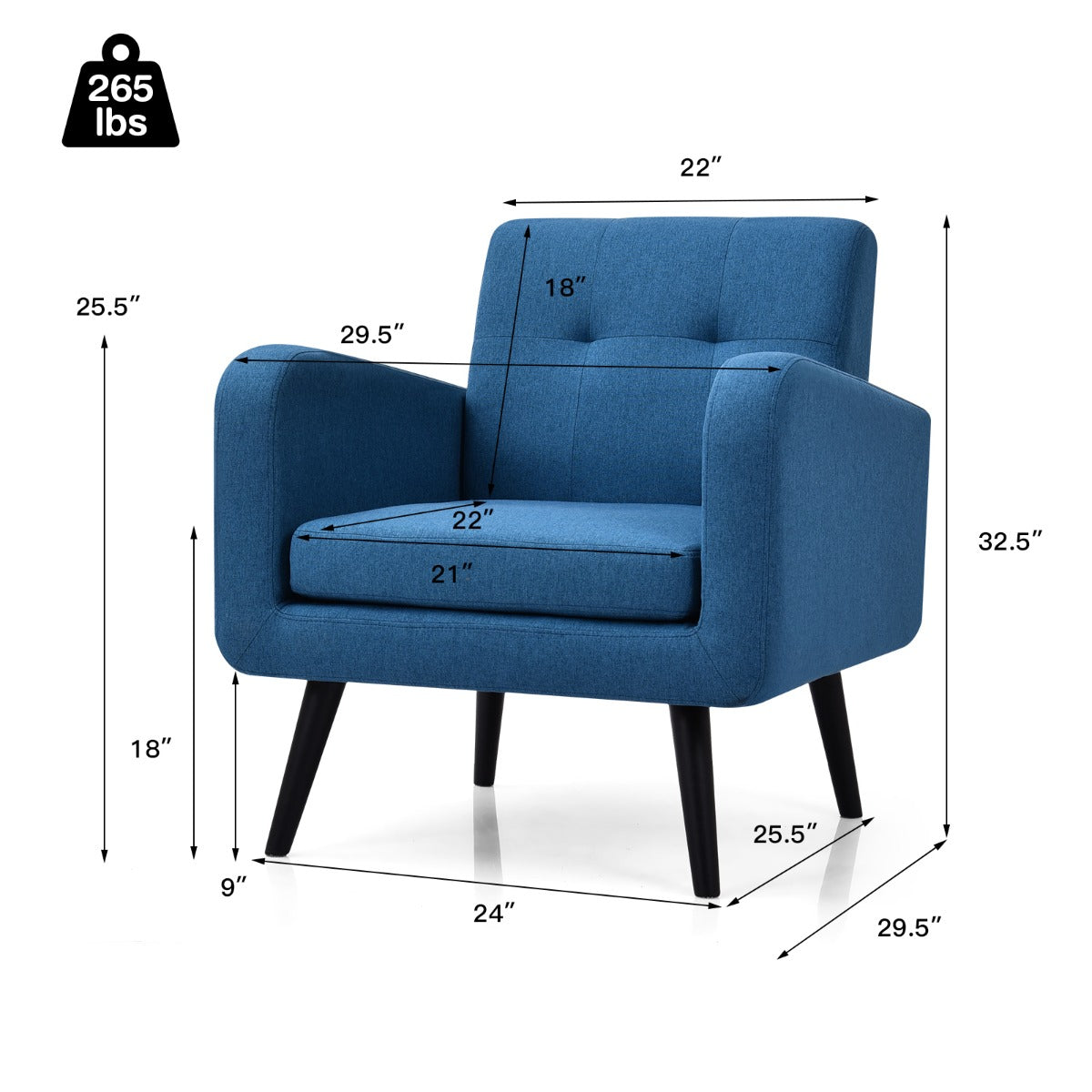 Easy to Assemble: This accent chair comes with a clear and brief instruction, which has straight forward illustrations and descriptions. Each screw and part has its own code to let you easily understand the assembly progress. You just take little time and energy to put body, back and legs together.
