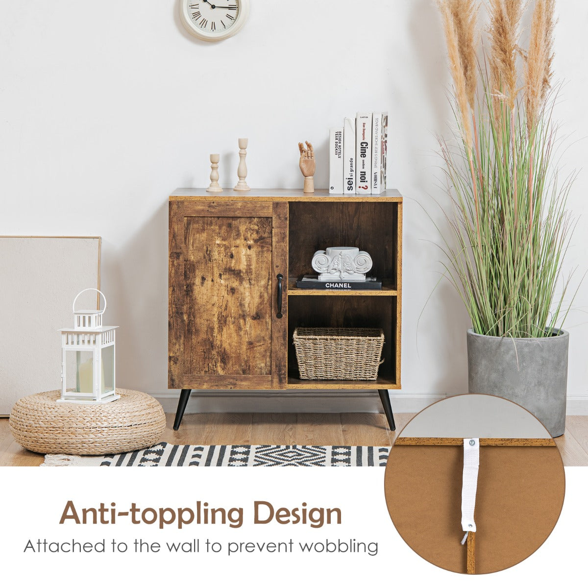 Have you found a favored storage cabinet? The single door cabinet would be one of the appropriate choice for you. The combination of spacious cabinet top, 1 enclosed cabinet and 2 open shelves is flexible for you to store daily items in different sections. Moreover, the 3-position adjustable shelves facilitate the storage of different sized items. Considering safety use, the floor cabinet comes with anti-toppling device for higher stability. This mid-century storage cabinet is harmoniously combined with any interior decoration, which is suitable for living room, bedroom, dining room, kitchen, etc.