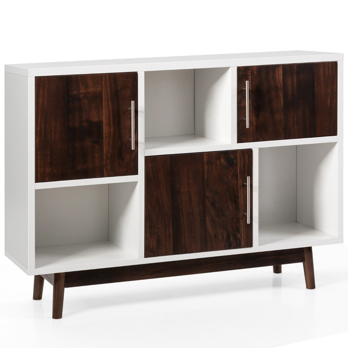 Trendy Design: Featuring 6 compartments of varying sizes and shapes, this storage and display cabinet is created with irregularity in mind, which makes this piece of furniture even more chic and hot. Espresso doors with wood grains add more eye-catching details to this buffet table.