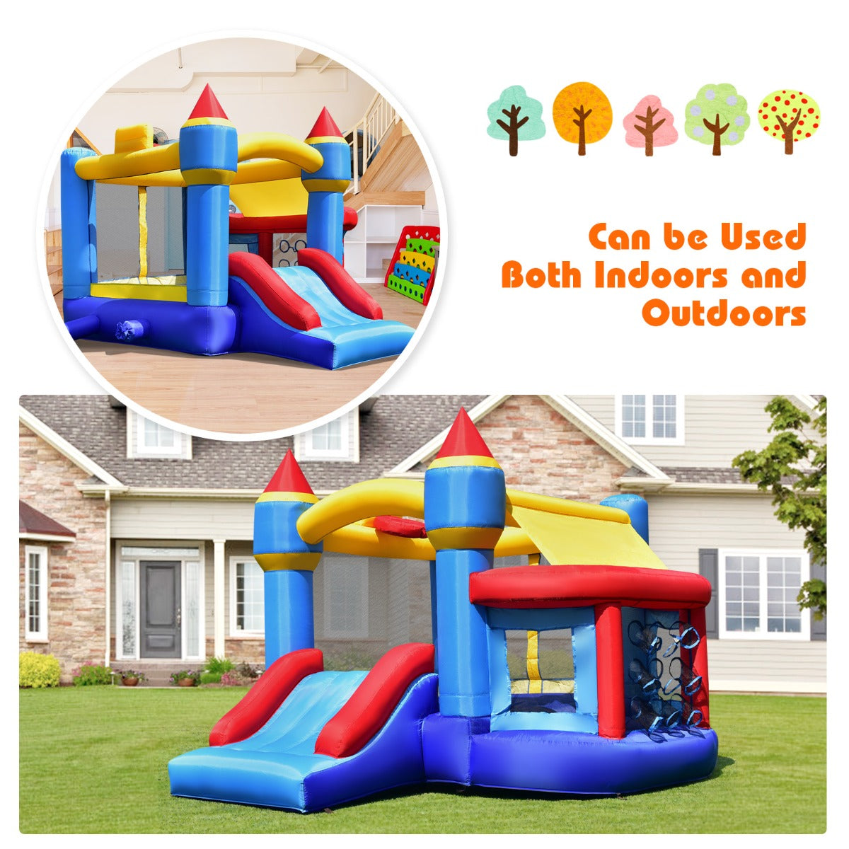 Quick Setup & Wide Application: This jumping castle can be set up and taken down easily with a blower within few minutes. And the carrying bag allows for convenient storage when not in use and easy transportation for outdoor activities anytime. It's ideal for the park, lawn, backyard, or your large living room.