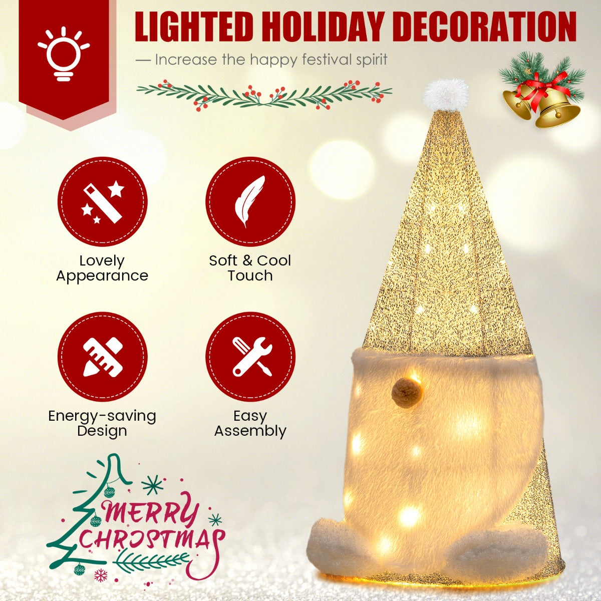 Great Holiday Decoration: This lighted decoration will create a warm and romantic holiday atmosphere wherever you place it. Not only for home decor, it is also perfect for parties, events, window dressing, stores, etc. Overall dimension: 32.5 x 28 x 67 cm (L x W x H).