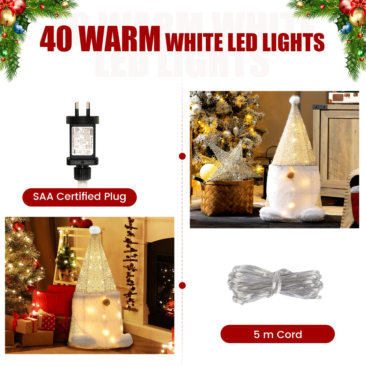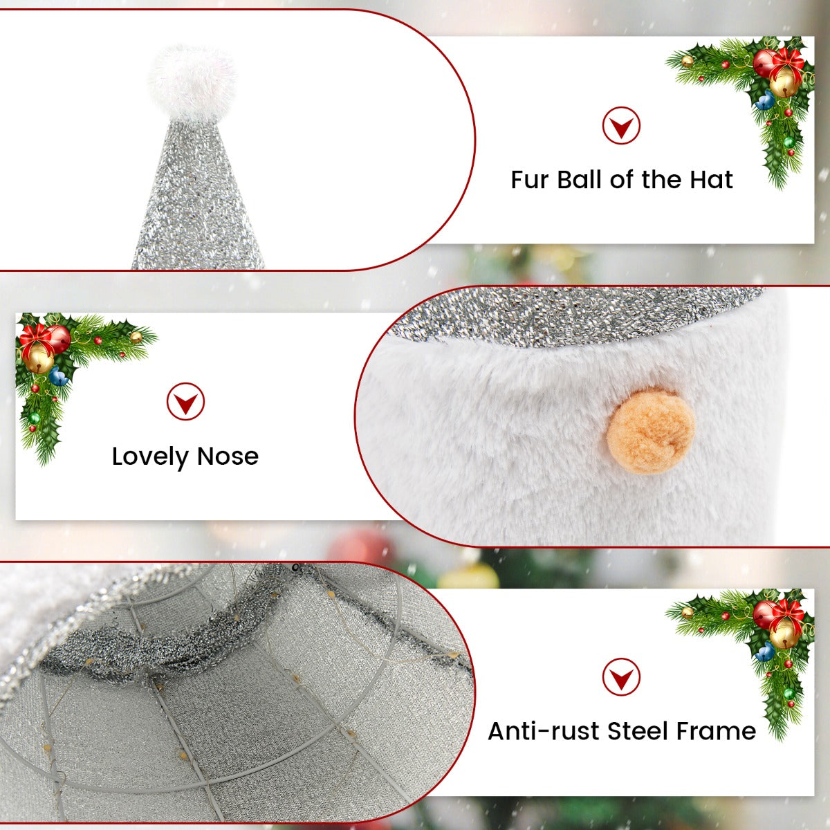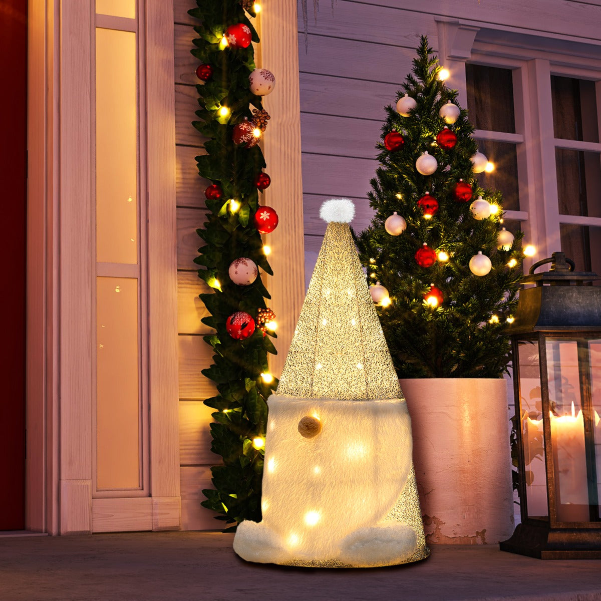 Adorable Gnome Design: This lighted Christmas decoration is designed with a Gnome appearance. The lovely nose and silver hat with a fur ball make this pre-lit Gnome look more attractive. With the cute look, it will be a perfect decoration for your home, backyard or garden.