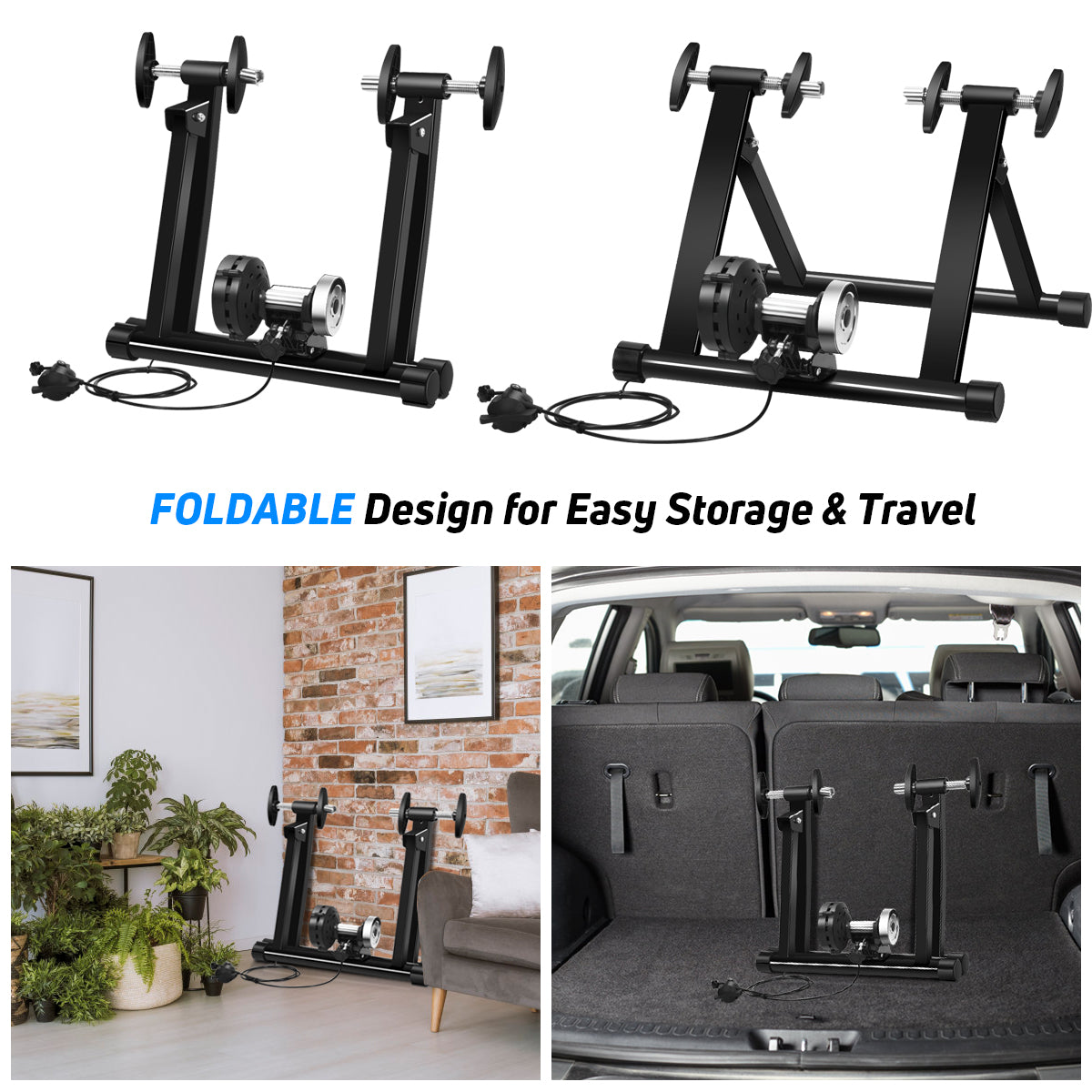 With/Without Magnetic Resistance Setting Available: Our two bike trainers are controlled with magnetic resistance, which ensures a smooth and quiet workout. There are 2 options to choose from, namely without adjustable magnetic resistance and with 8-stage adjustable magnetic resistance, which are suitable for beginners and advanced.