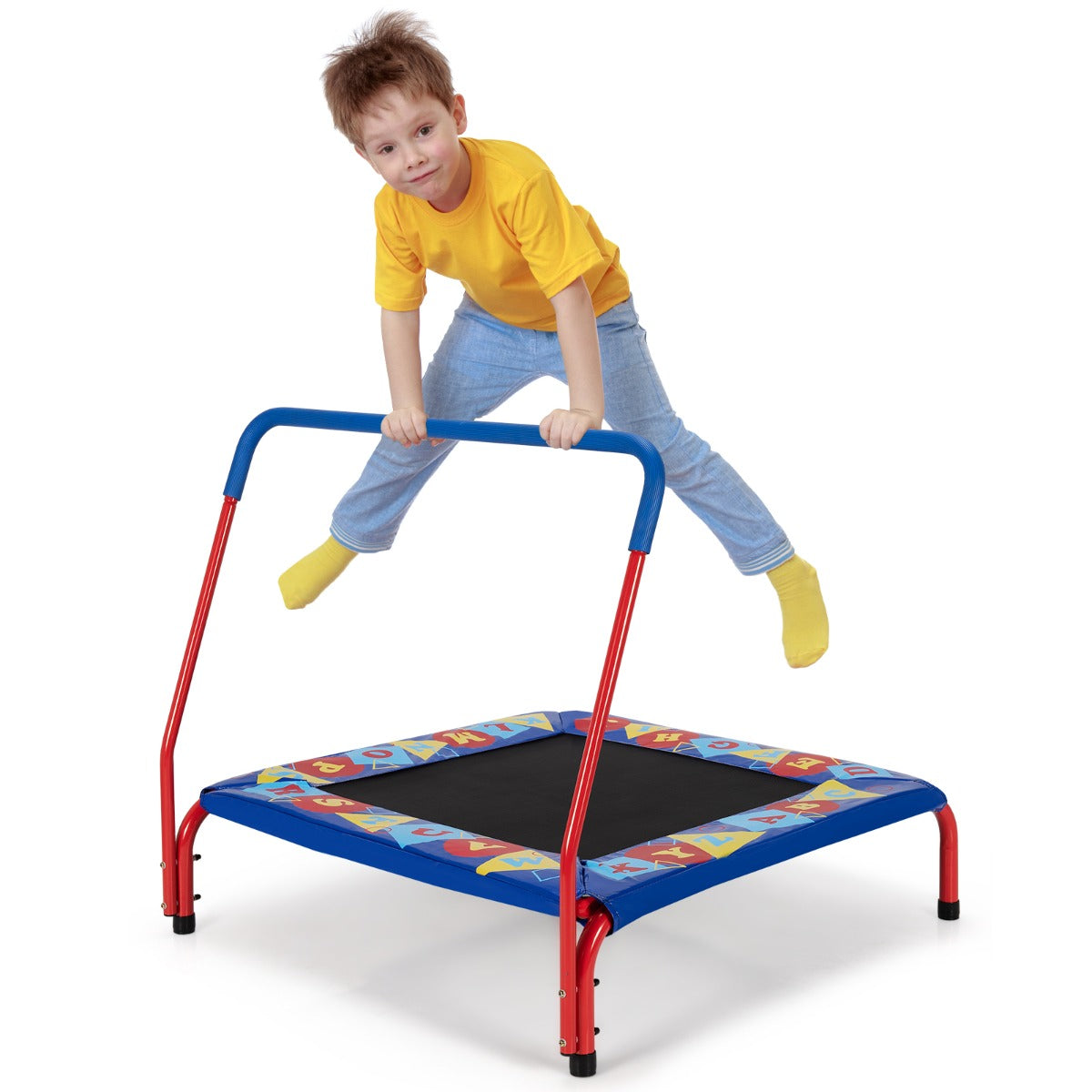 Safe & Balanced Design: Made of reinforced steel frame with four curved legs and super strong springs, the trampoline allows kids to jump without any wobbling. And the anti-slip footpads offer added stability and protect the ground from scratches. Moreover, the foam-covered handrail is easy for kids to grip firmly while jumping.