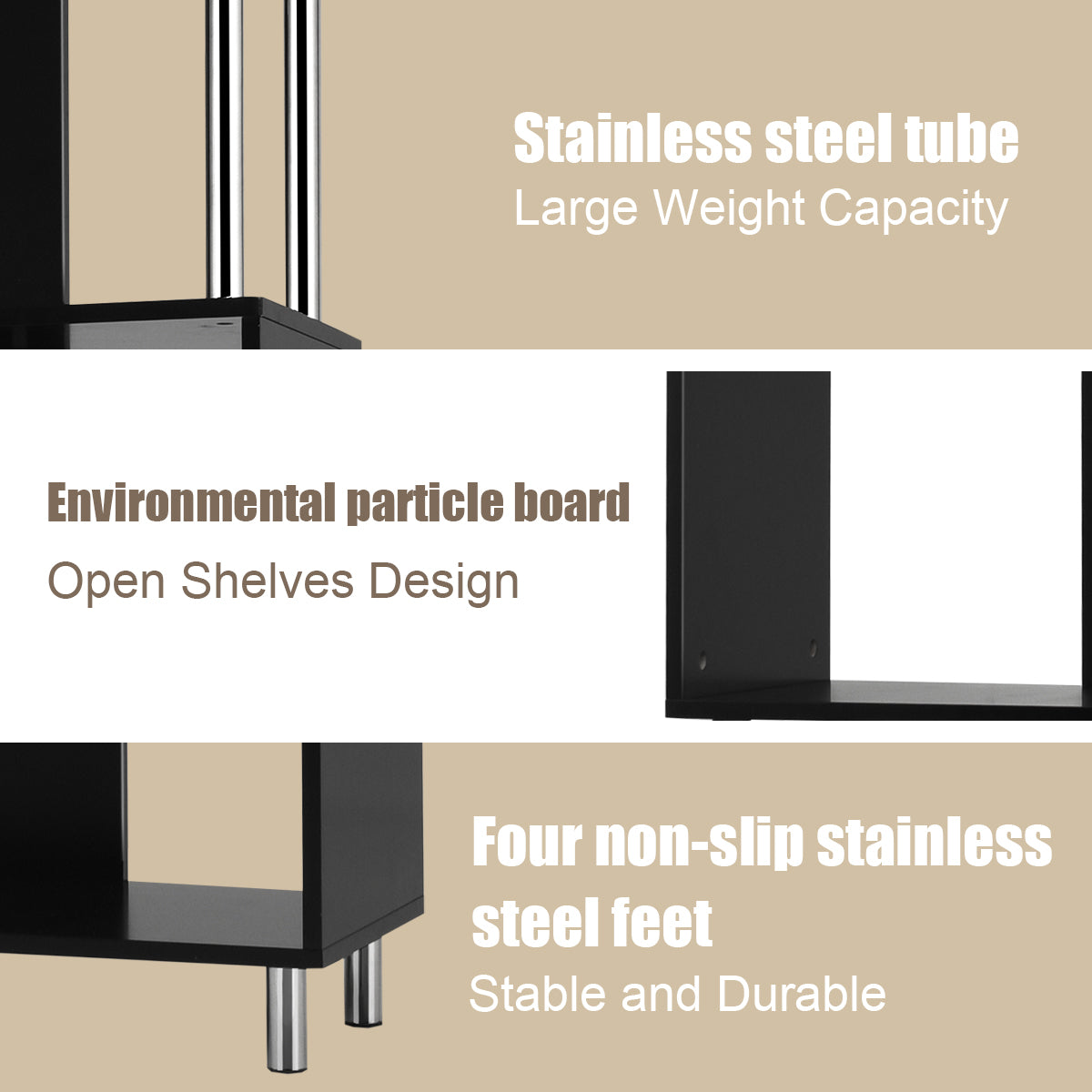 Stable Metal Frame: With the steel frame on the side and the non-slip support feet, the bookshelf is extremely stable. The surface of the steel tubes is galvanized for excellent wear resistance and rust resistance.