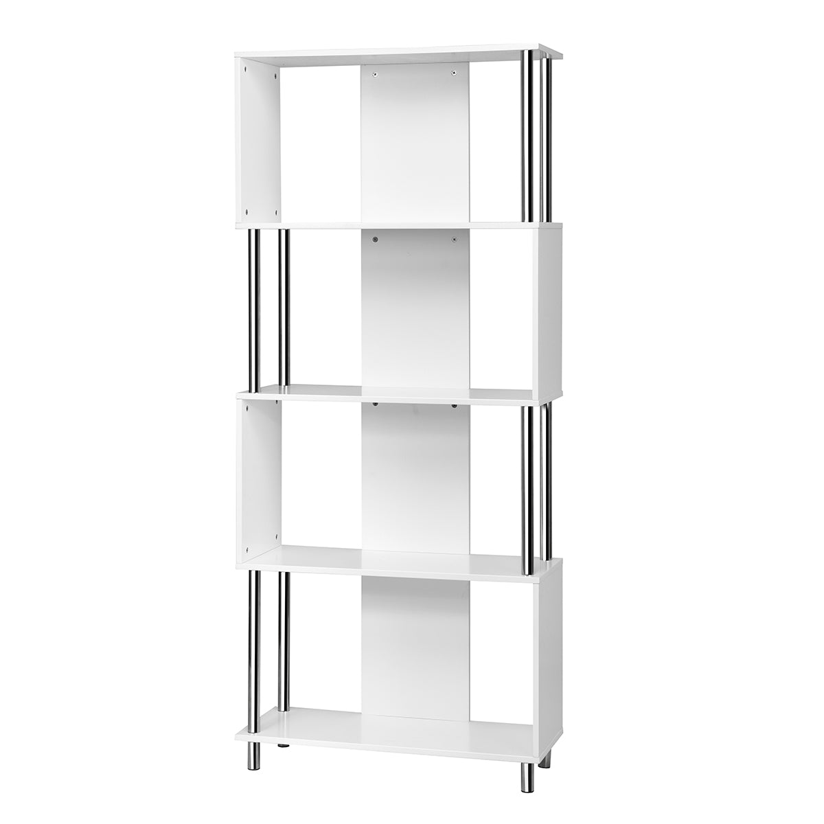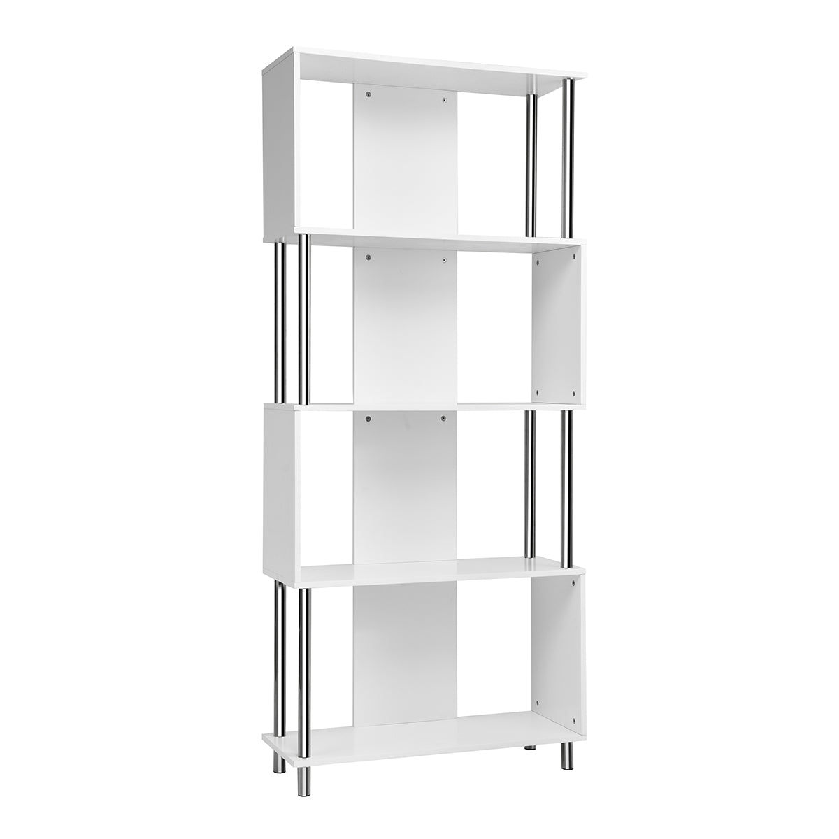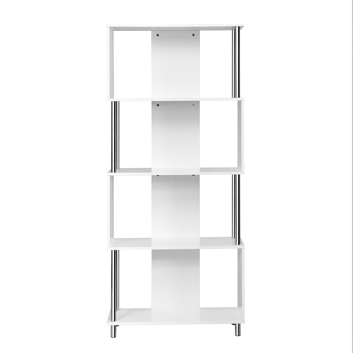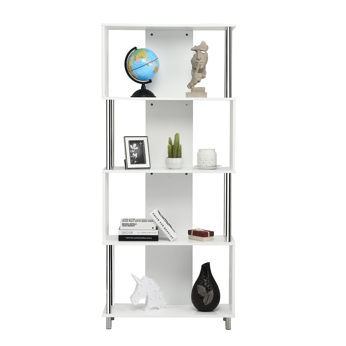 This attractive bookshelf combines wood and metal material artfully, show to an industrial character and artistic appeal feeling, pure white surface, the clean lines gives this bookcase a thoroughly modern fresh style. it meets the aesthetic of practicality and adds a lot of interest and particular charm to any room's interior. Snaking bookshelf with modern open concept design, four tiers large open shelf can display your books, CDs, DVDs, vases, photo frames, decorations and collectibles. It will be your best organizer to make your living room, bedroom, and office tidy, It is a good ornament that let your room full of fashion sense. Don't hesitate to buy it now!