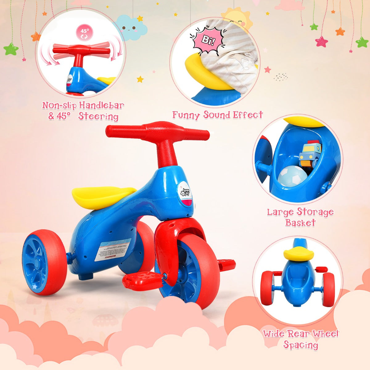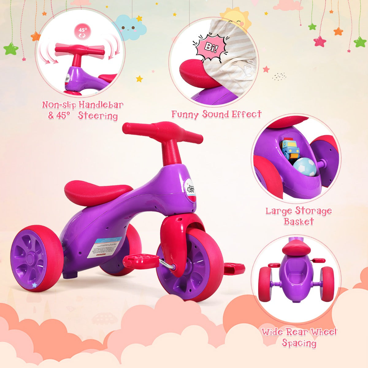 Kids will love this cute tricycle with durable tires, which is helpful to take them to everywhere they want to go. This tricycle bike features the secret little storage box under the comfort-ride seat for carrying little toys and snacks during the ride! The toddler tricycle is the first bike for toddler to develop balance and learn to walk. It's the best gift for toddlers! It brings fun and joy to kids and brings the wonderful childhood to them!