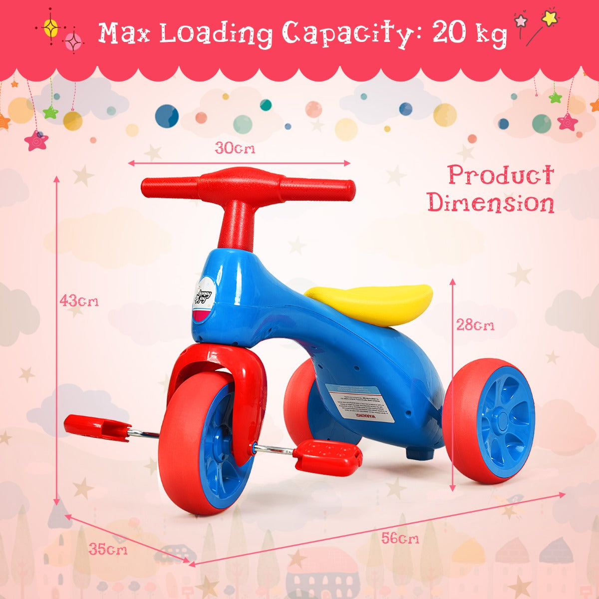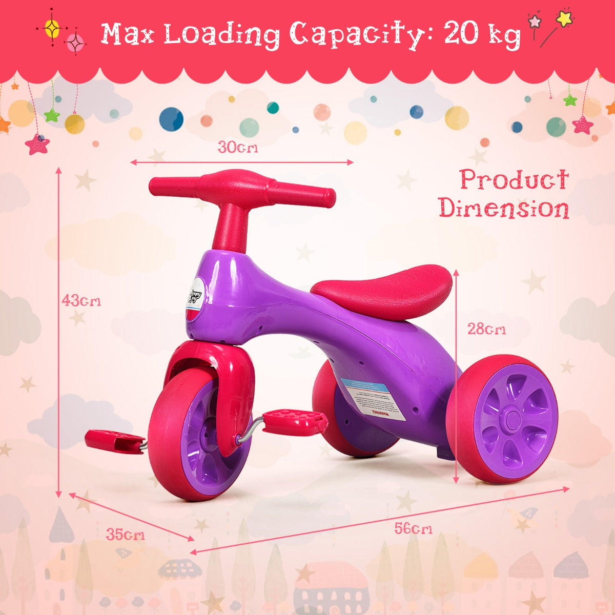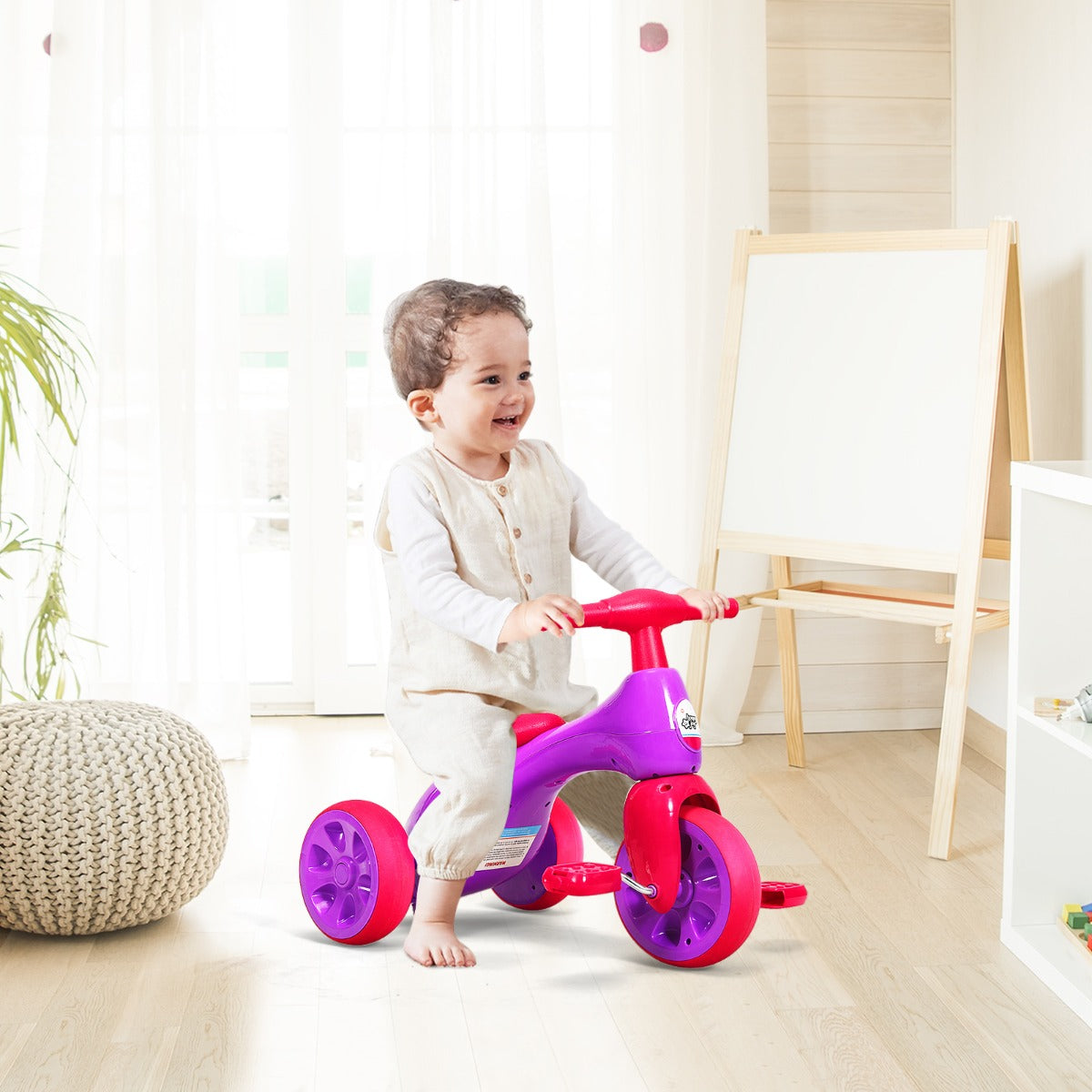 Perfect Gift for Toddler The tricycle bike is designed to help children to learn and develop good balance and steering skills in a fun way. Their vibrant colors display their own personality. It is also helpful to kids to improve independence and an increasingly confident sense of I can do it!. And it's great for both indoor and outdoor use.